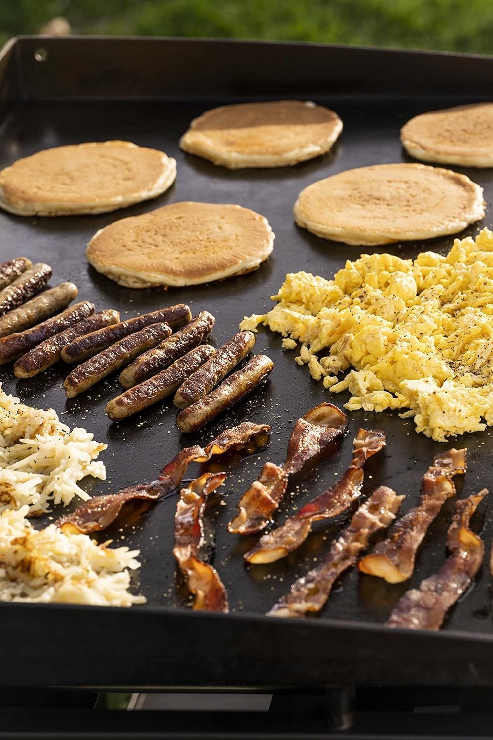 Blackstone 2149EU — це просто потужна сковорода з потужністю 60 000 BTU, готова приготувати будь-яку їжу, про яку тільки мрієте. З 720 квадратними дюймами сталі та чотирма незалежними зонами приготування ви зможете приготувати стільки їжі, щоб нагодувати армію в будь-який час дня - сніданок, обід і вечеря!