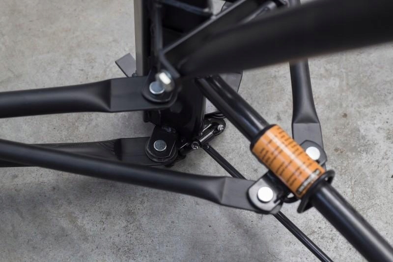Трилапакова конструкція з фіксованими колесами забезпечує стабільність і мобільність. Крім того, він оснащений додатковими опорами, які запобігають ковзанню підйомника по підлозі.