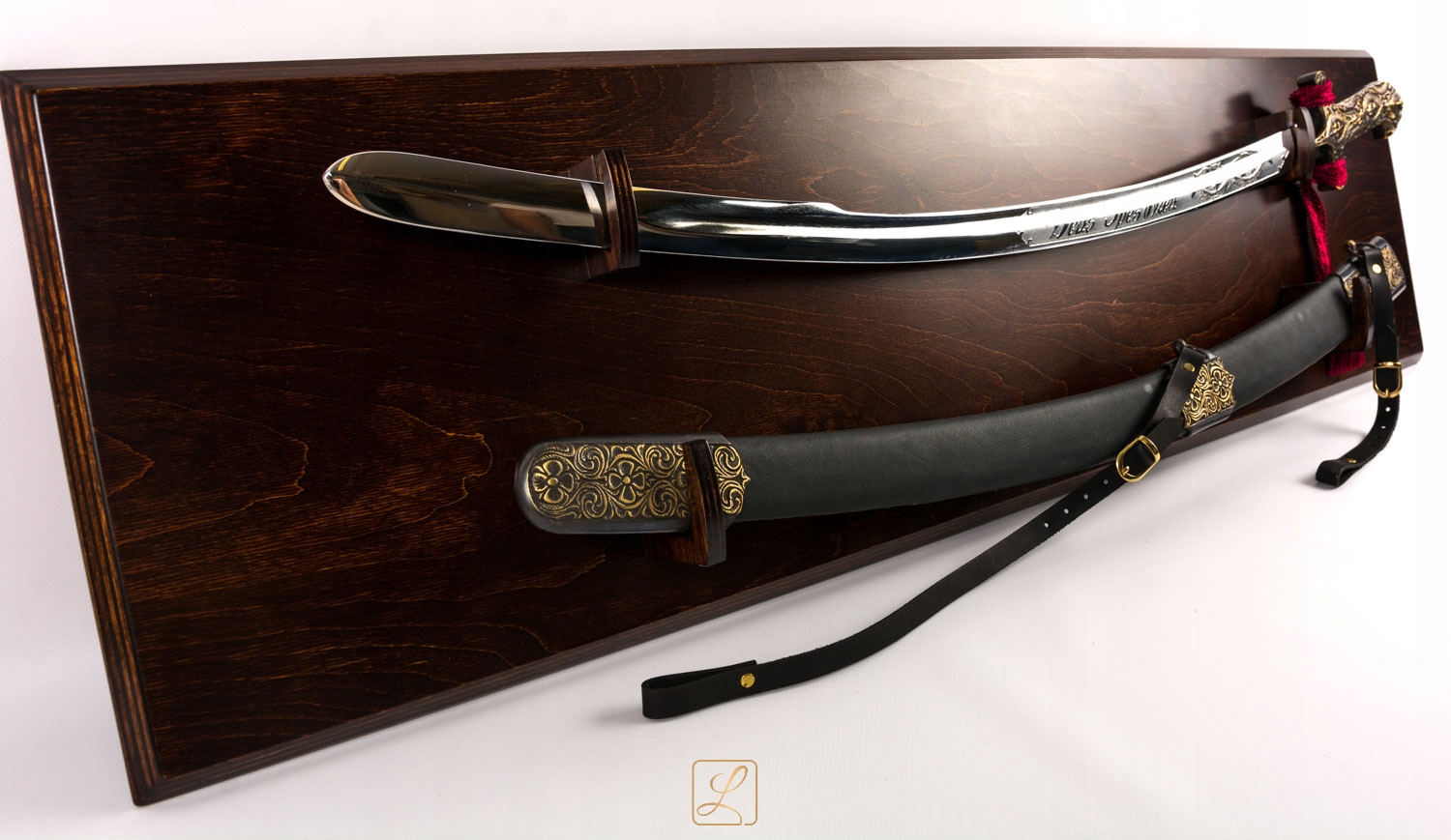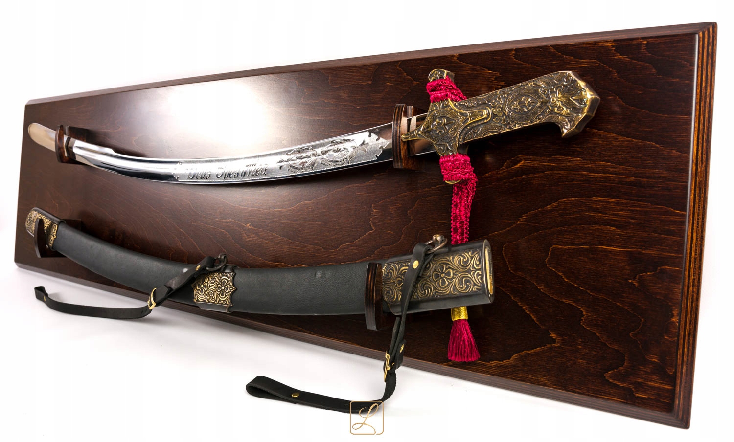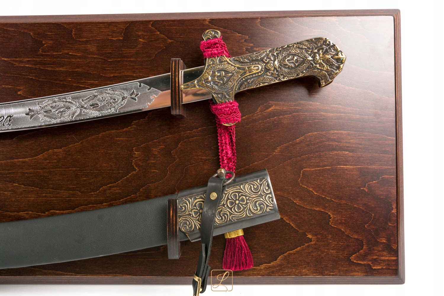 Прекрасно зроблена шабля, вона виглядає ефективно на прикріпленому табло . Табло, виготовлений з фанери, забарвлених і лакована для килима. На задній частині столу два гачки, щоб повісити на стіну. Робота польського майстра для презентації білої зброї.