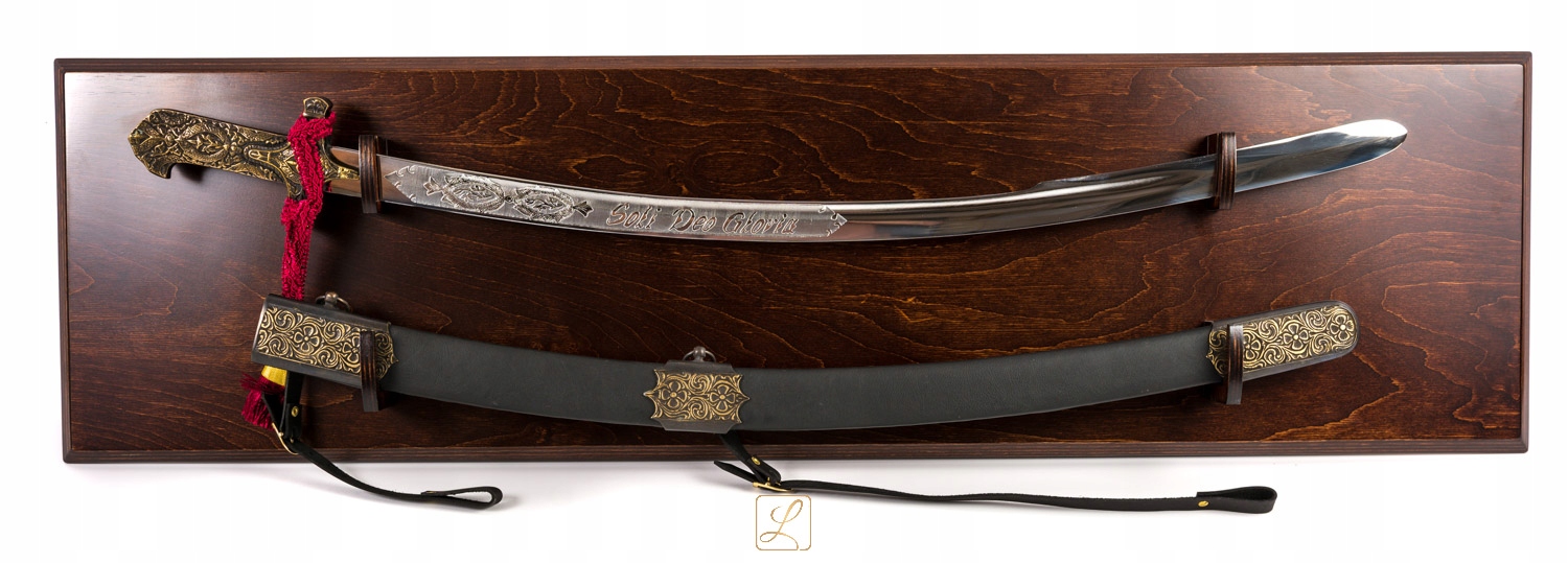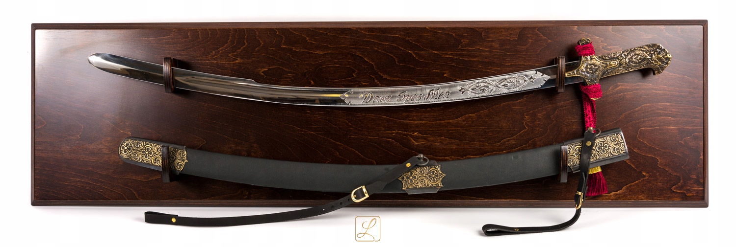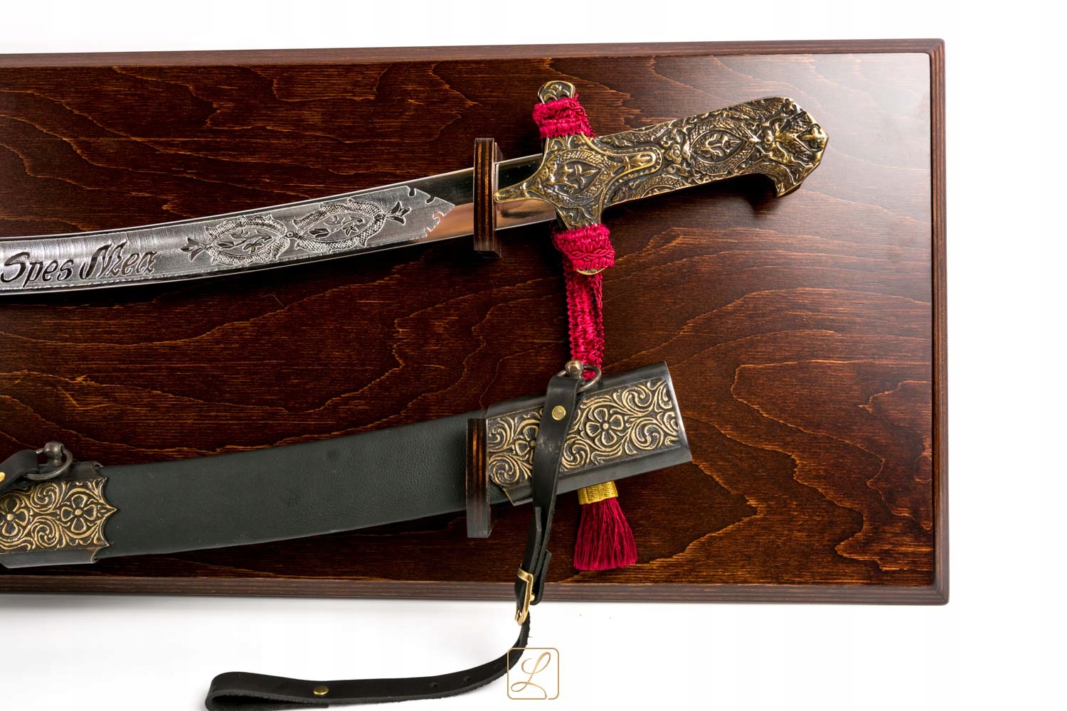 Прекрасно зроблена шабля, вона виглядає ефективно на прикріпленому табло . Табло, виготовлений з фанери, забарвлених і лакована для килима. На задній частині столу два гачки, щоб повісити на стіну. Робота польського майстра для презентації білої зброї.