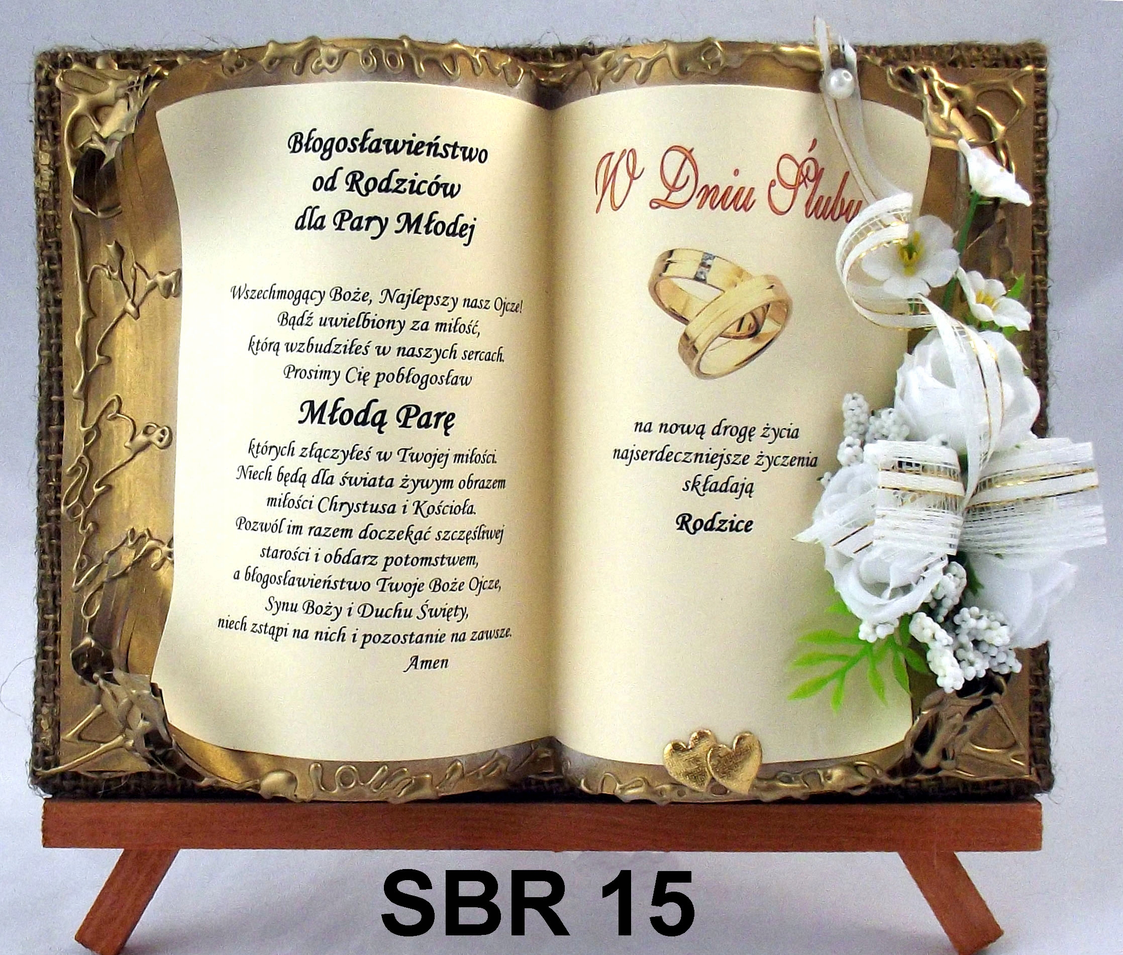 де на головній сторінці є універсальний текст побажань БЛАГОСЛОВЕННЯ від батьків нареченим і нареченимз нагоди весілля з гарним просторова композиція тканинних квітів