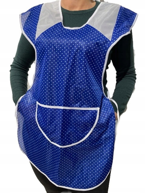 Захисний фартух одягається через голову, зав'язується з боків зав'язками. Він має велику кишеню спереду.