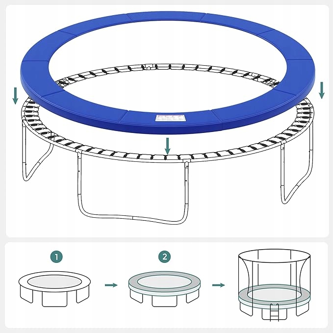 ✅ м'яка обкладинка, встановлена на пружинах, забезпечує оптимальний захист від травм. Продукт товщиною 15 мм і 300 мм завширшки охоплює як пружину, так і край батуту, тим самим запобігаючи травмам у разі падіння цієї частини рекреаційного пристрою.