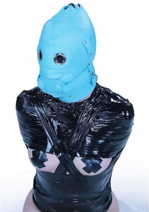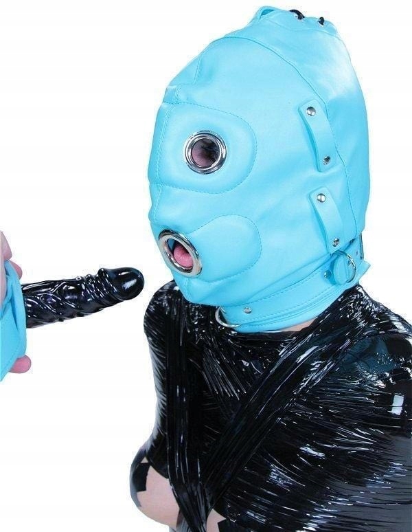 Маска депривації - маска, що покриває все обличчя, дозволить вам придушити зір і зосередитися на інших відчуттях. Кучерява блакитна шкіряна маска - унікальний еротичний гаджет для домінування. Має шнурівку ззаду та регульовані лямки, що застібаються на замок. Повнолицьова маска поставляється з пов’язкою на очі та довгим фалоімітатором. Кляп знімний - це варіант тільки для садо-мазо ігор, його не обов'язково використовувати в будь-якій ситуації. Маска для очей також є додатковим аксесуаром - вона чудова для домінування, але вона не прикріплена до маски назавжди і її можна зняти. І пов’язку на очі, і кляп можна використовувати як самостійні еротичні гаджети, від’єднавши їх від маски.