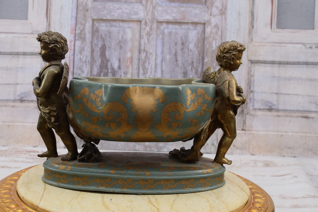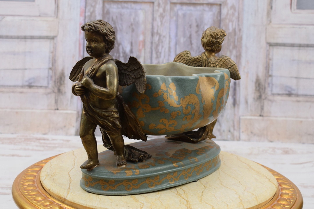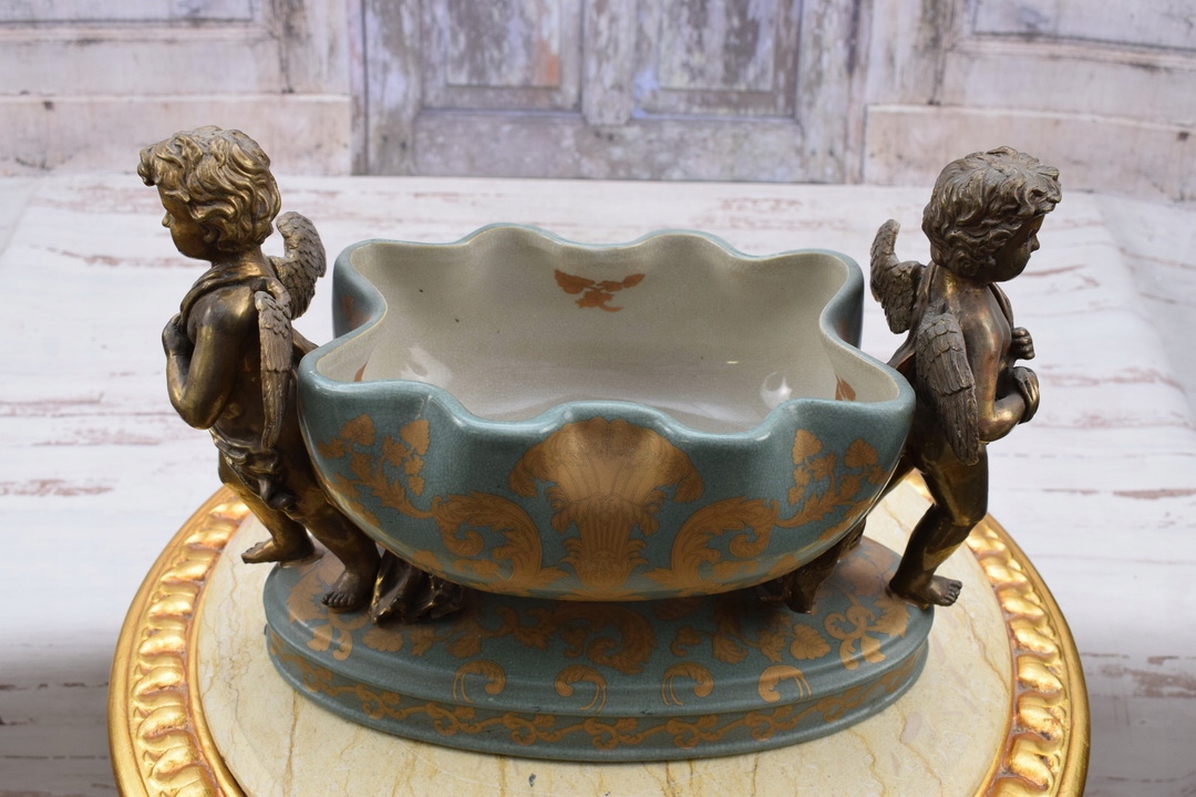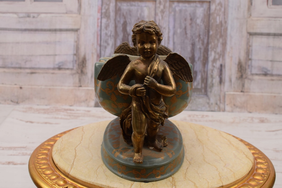 Блакитна та золота тарілка - Ангели Аморі - Бронзові фігури - Позолочені Унікальні