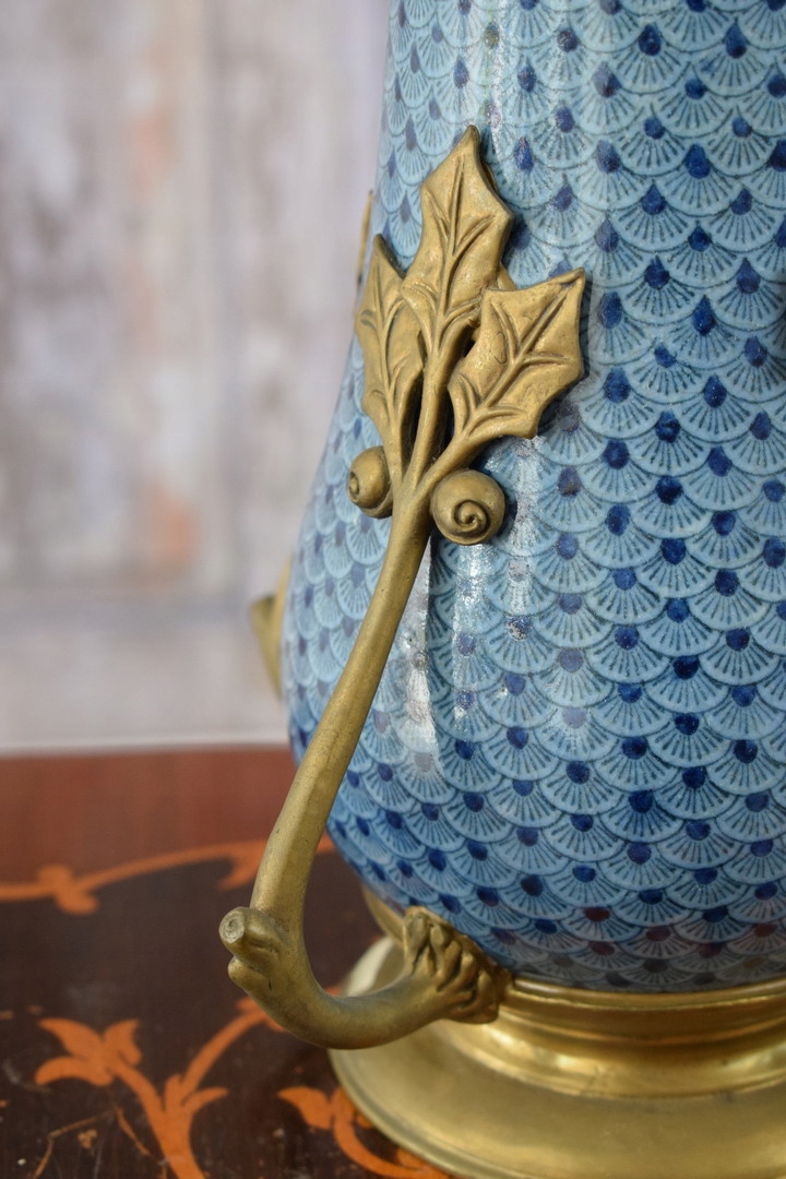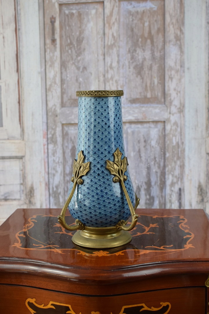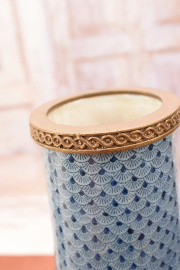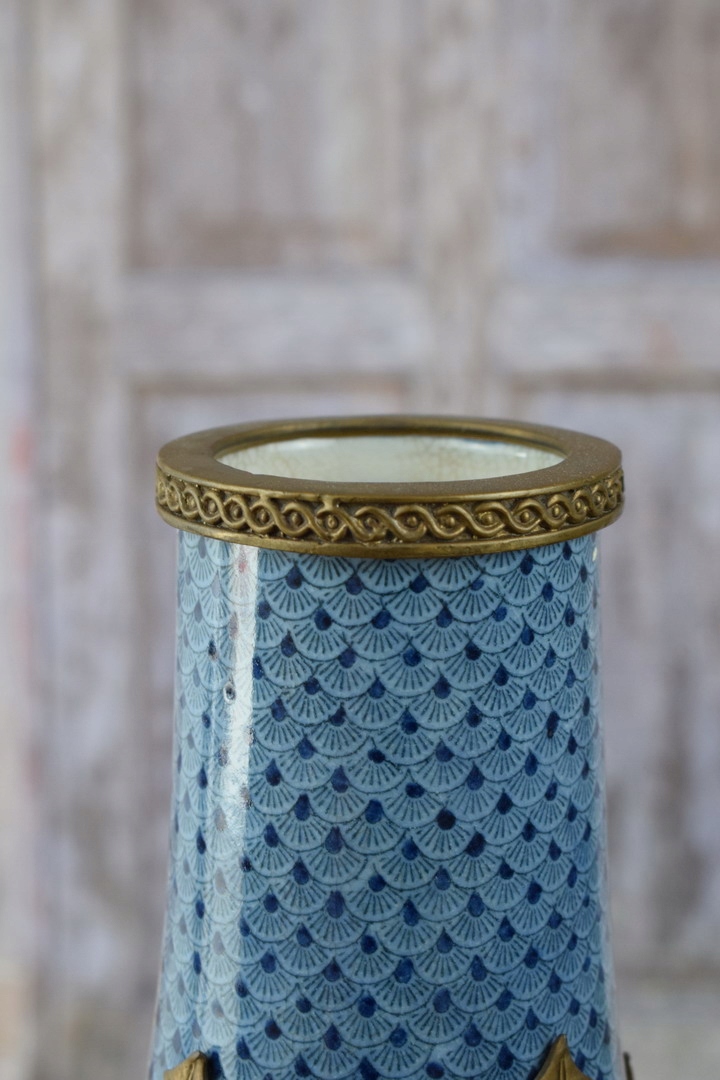 Блакитна ваза Флакон Порцеляна + Бронза Вінтаж