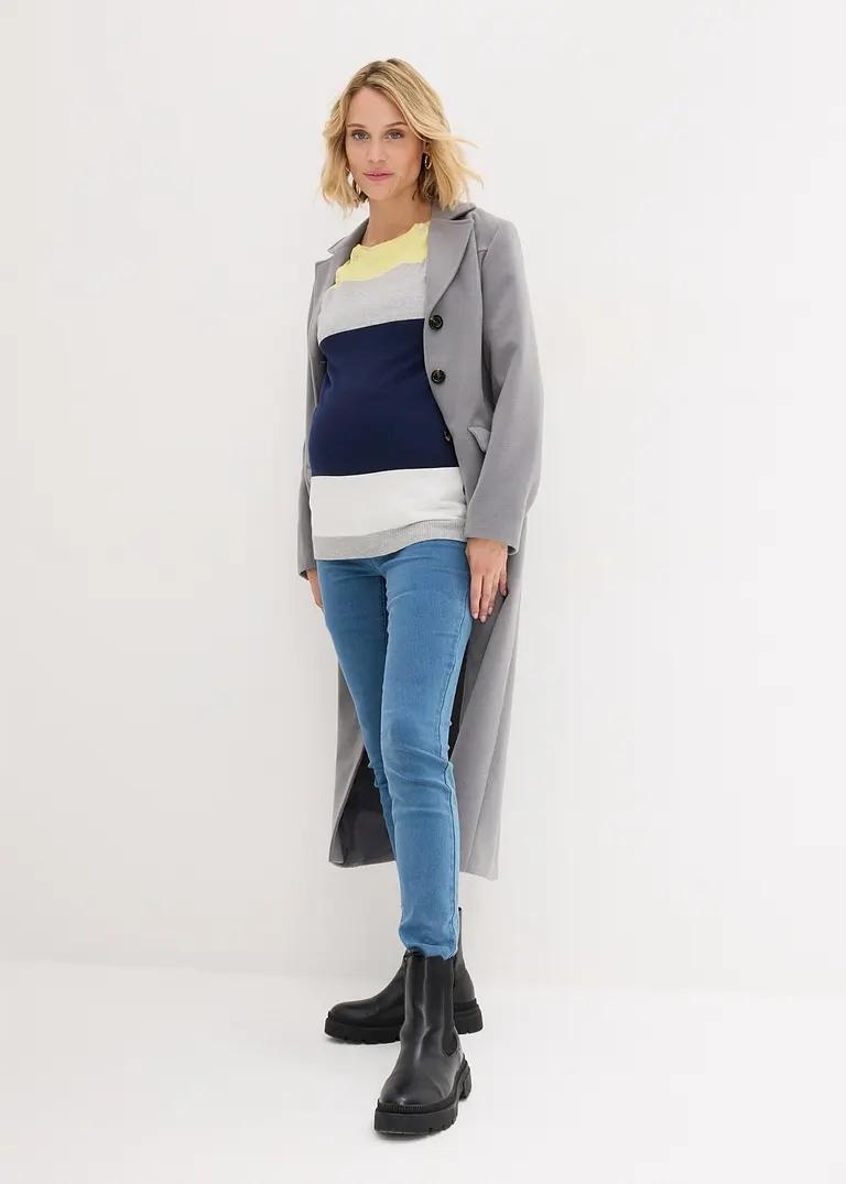 Блакитні джеггінси для вагітних з бавовною - зручний і стильний варіант для майбутніх мам. Гнучкий матеріал адаптується до вашого живота, що росте, забезпечуючи комфорт протягом усього дня. Бавовняна тканина гарантує легкість і м'якість, а класичний трубчастий крій підкреслює фігуру, поєднуючи моду з функціональністю.