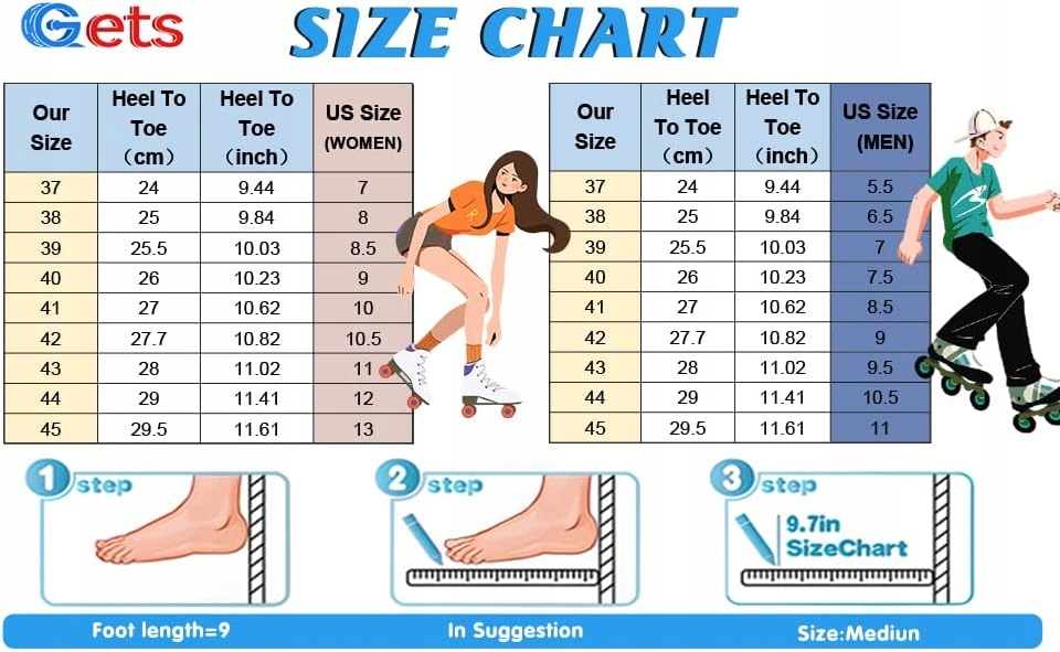 Зверніть увагу: Вибираючи роликові ковзани Jessie, зверніться до нашої таблиці розмірів і спочатку виміряйте довжину стопи.