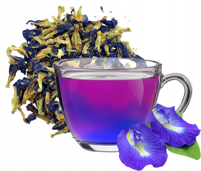 Klitoria Ternateńska інакше Чай з метеликового горохуце рослина, що вирощується переважно в Азії. Настій, приготований з чаю Butterfly Pea Tea, має гарний блакитнийколір і трав'яний аромат і смак з помітними деревними та землистими нотками, що нагадує поєднання зелений і червоний чай.