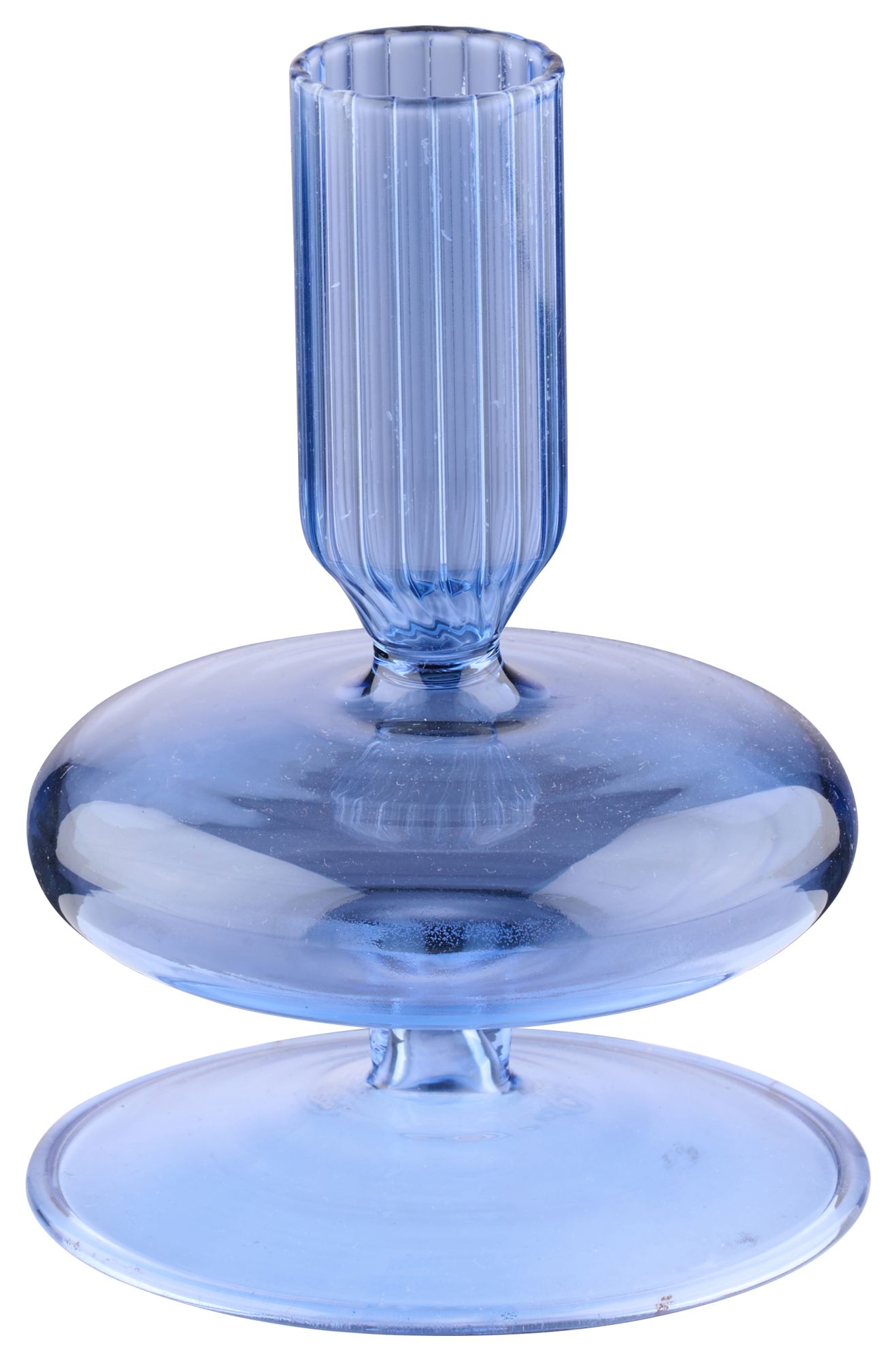 Блакитний скляний свічник НЛО 8х11см СУЧАСНИЙ СВІЧНИК для довгих свічок