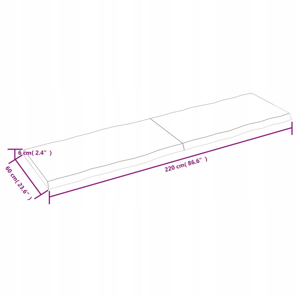 Blat, jasnobrązowy 220x60x(2-6) cm drewno z naturalną krawędzią