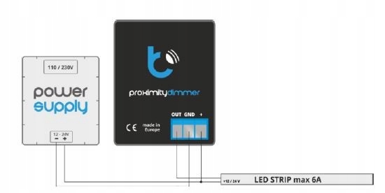 BleBox ProxiDimmer — це готовий модуль, який дозволяє керувати світлодіодними стрічками за допомогою дотиків і жестів. Робоча напруга від 12 до 24В. ККД по струму 6А. Модуль захищений від зворотної полярності і працює на основі сигналу ШІМ (8 біт). ProxiDimmer не потребує налаштування - підключіть блок живлення та світлодіодну стрічку.
