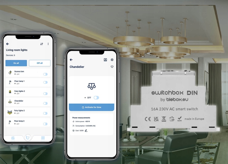 Використовуйте датчики BleBox для керування "switchBox DIN" через мережу WiFi без проводів, наприклад: