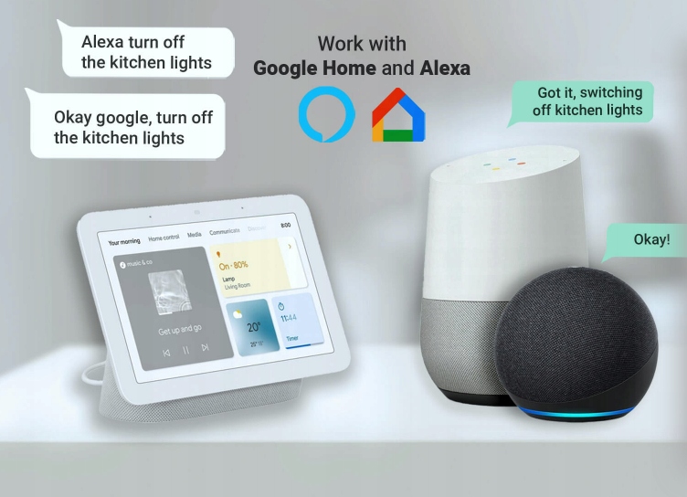 У поєднанні з голосовими помічниками Google Home і Amazon Alexa ви можете керувати пристроями за допомогою голосу.