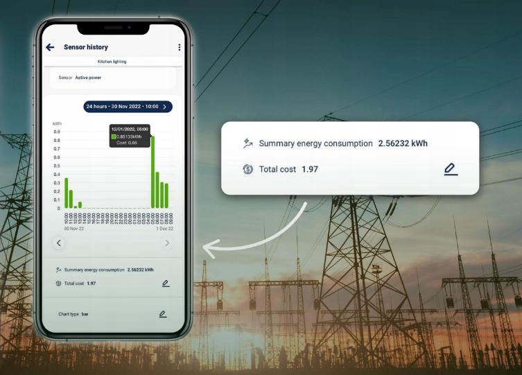 Завдяки історичні дані та інтерактивні діаграми, ви можете побачити, скільки електроенергії споживає ваш пристрій або електричне коло за кожну годину чи хвилину.