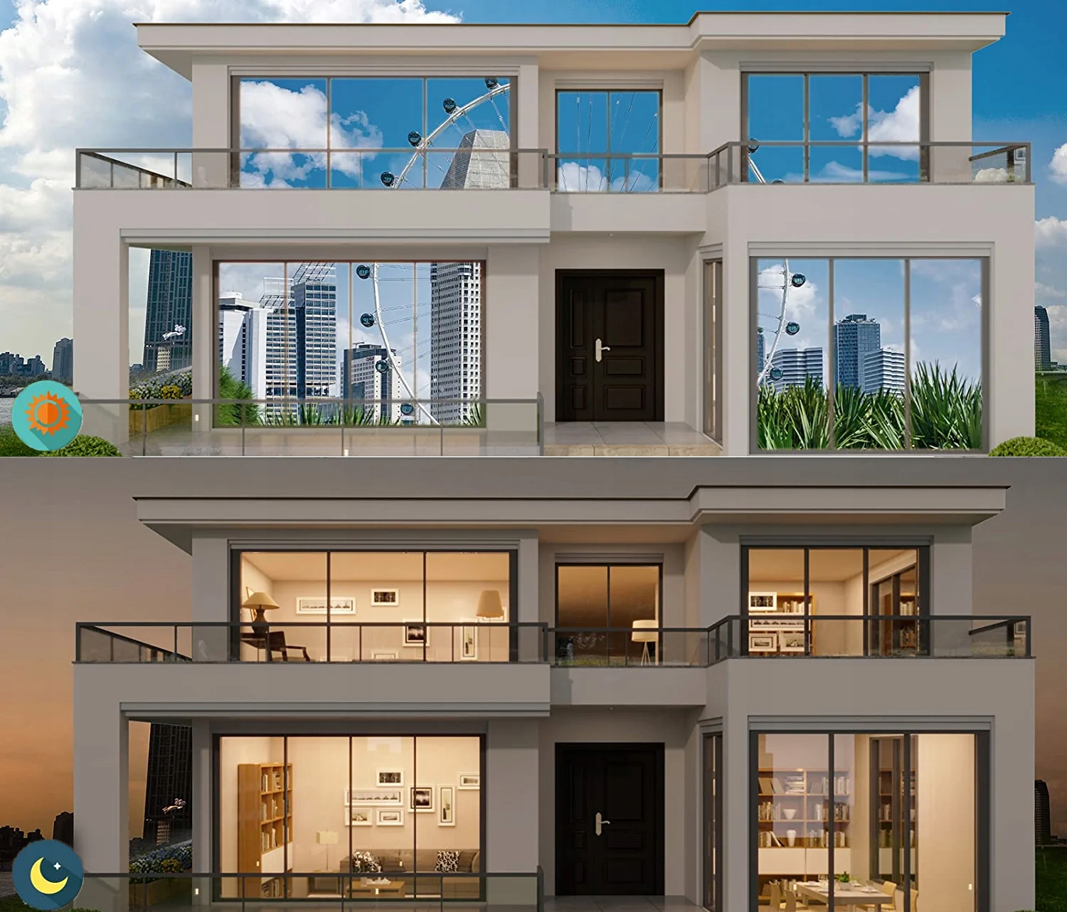 Дзеркальний ефект завжди можна досягти на світліша сторона скла. Протягом дня природне освітлення на вулиці набагато яскравіше, ніж світло в кімнаті, тому ви отримаєте дзеркальний ефект назовні. Коли в кімнаті горить світло, а надворі тьмяно або ніч, ви досягнете дзеркального ефекту всередині кімнати.