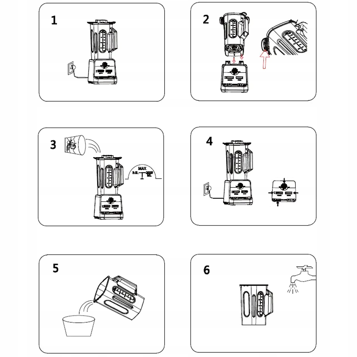 🥰 Усі деталі міцні, стійкі до удару і 100% не містять BPA. Кухонний блендер має захисний замок. Коли відокремлений барабан змішування та резервуар для води, блендер перестане працювати. Перевантаження або перегрів також може запустити систему безпеки.