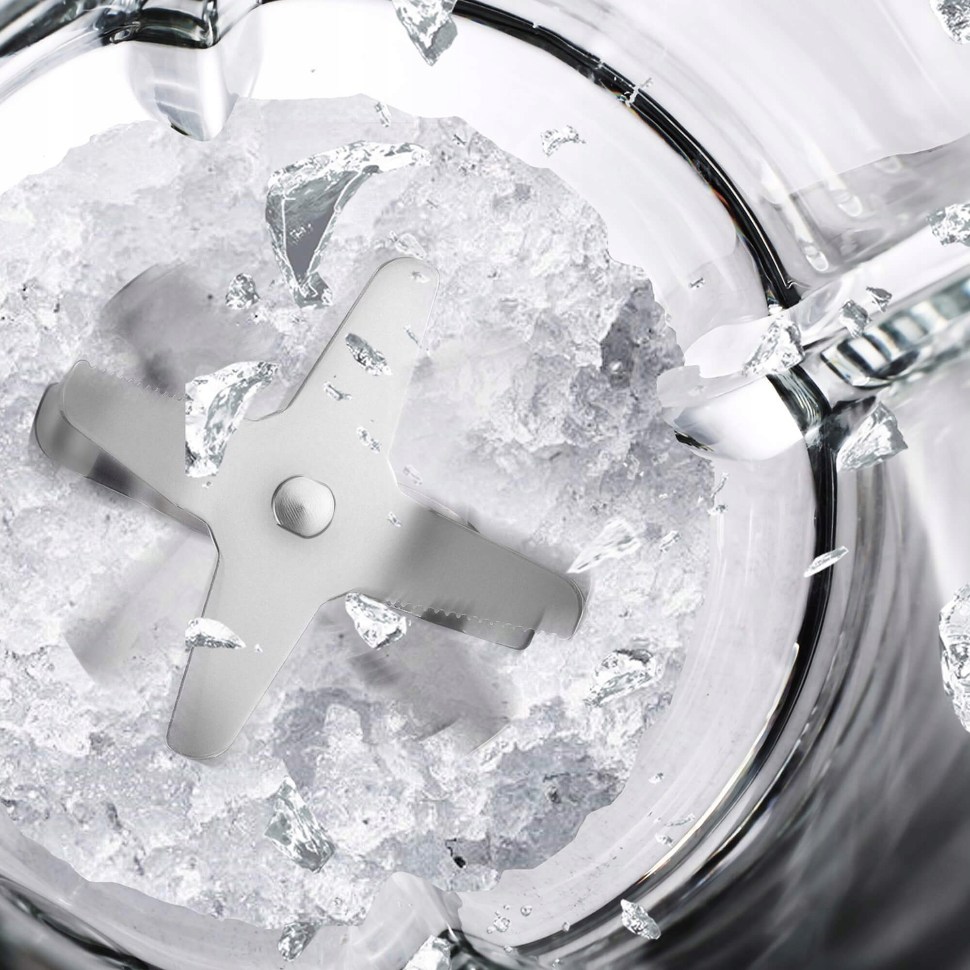 Ефективний блендер із скляним глечиком об'ємом 1,5 літра та лезами з нержавіючої сталі, які ідеально подрібнюють лід.