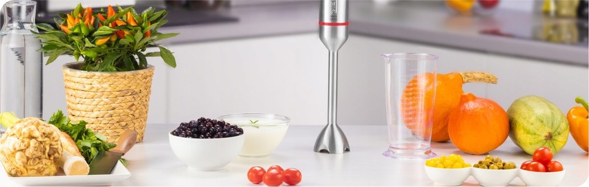Ручний блендер ZHB4650 – ідеальне рішення для зайнятих людей, які люблять свіжоприготовані страви. Приготування супів, мусів, сорбетів, шейків чи інших напоїв буде легким і приємним завдяки двигуну з вражаючою потужністю 1400 Вт і кнопці TURBO.