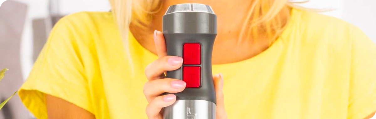 Легкий кухонний блендер. Ергономічна форма забезпечує оптимальну посадку в руці. Особлива форма насадки для змішування запобігає розбризкуванню їжі. Очищення після використання пристрою дуже легко, оскільки основу з лезами можна легко зняти та помити. Його невелика вага та ергономічна ручка, адаптована до руки, гарантують повний комфорт використання.
