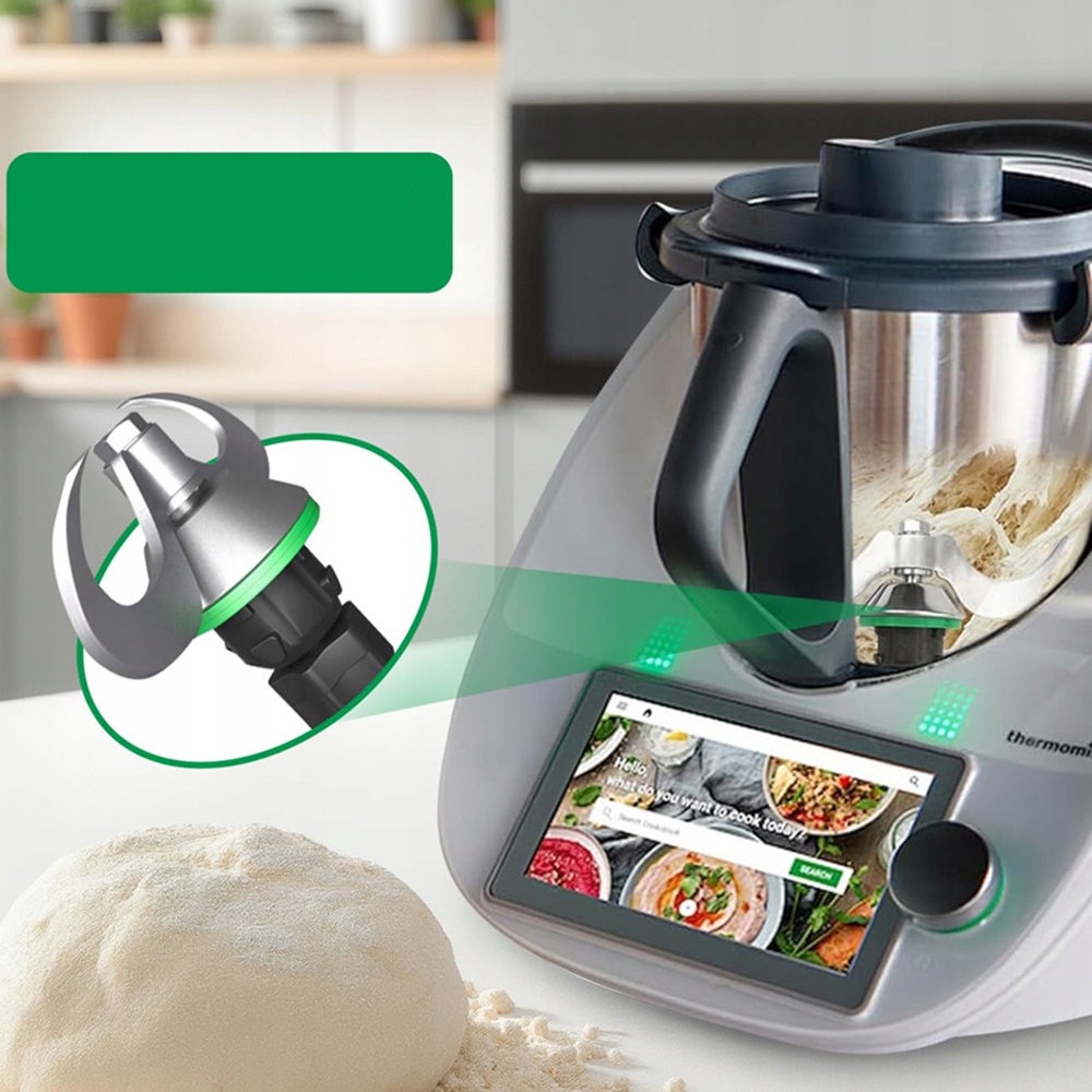 для замішування Thermomix: Сталева основа леза для замішування тіста повністю сумісна з Thermomix TM6 і TM5, що полегшує кріплення. В ідеалі підходить для випічки хліба, піци, тортів та інших продуктів, заощадження часу та енергії на кухні.