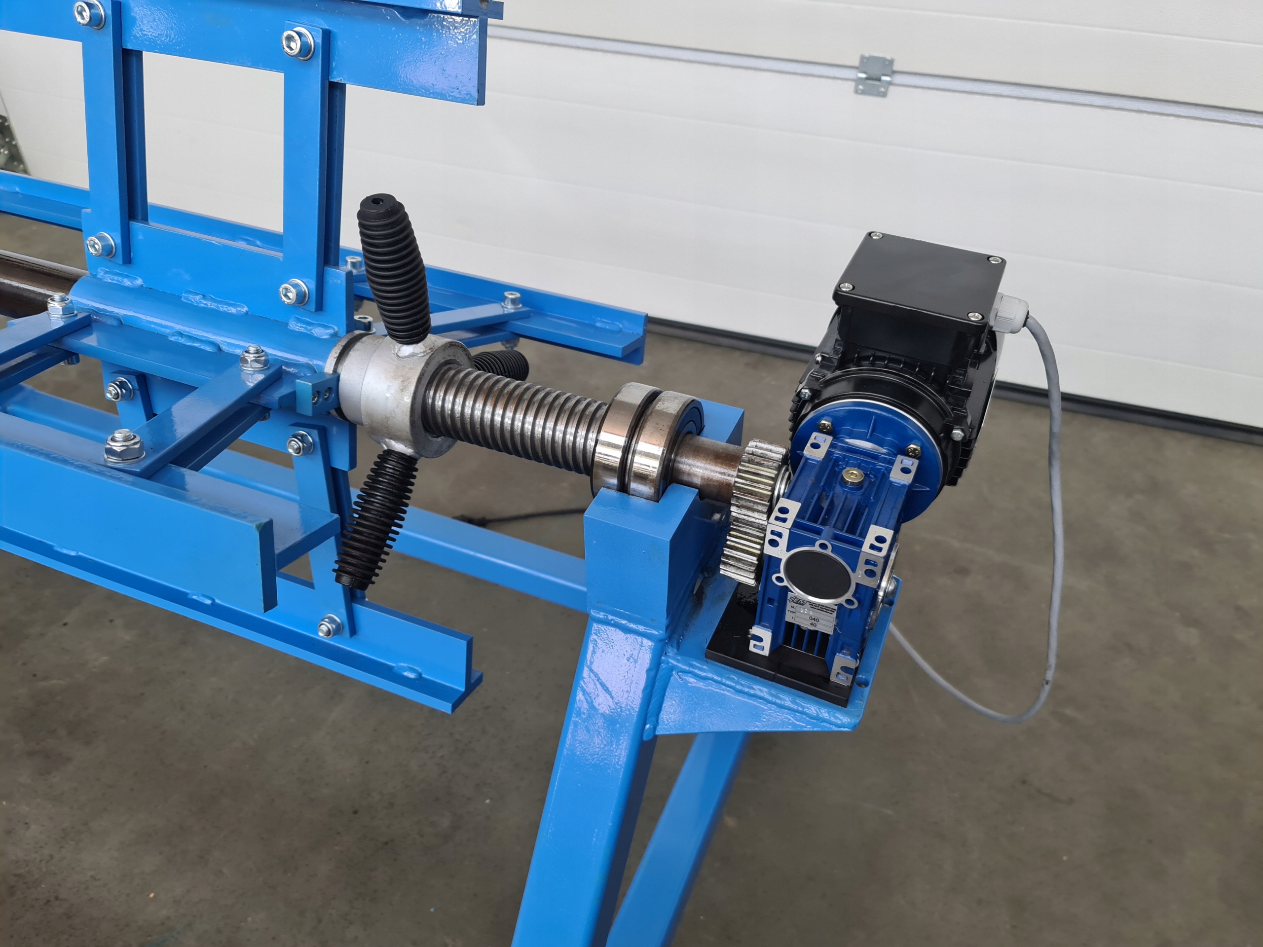 Електричний розробник для аркушів з шириною від 600 до 1500 мм до 3500 кг. Основа розробника з жорсткою конструкцією, виготовленою з сталевих профілів. Пристрій адаптується до внутрішнього діаметра кола кривошипами. Розробник має вбудовану гальмову та регульовану швидкість обертання.