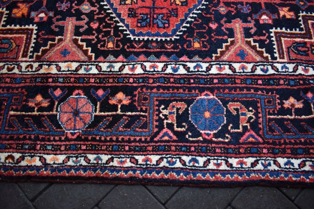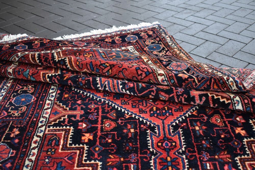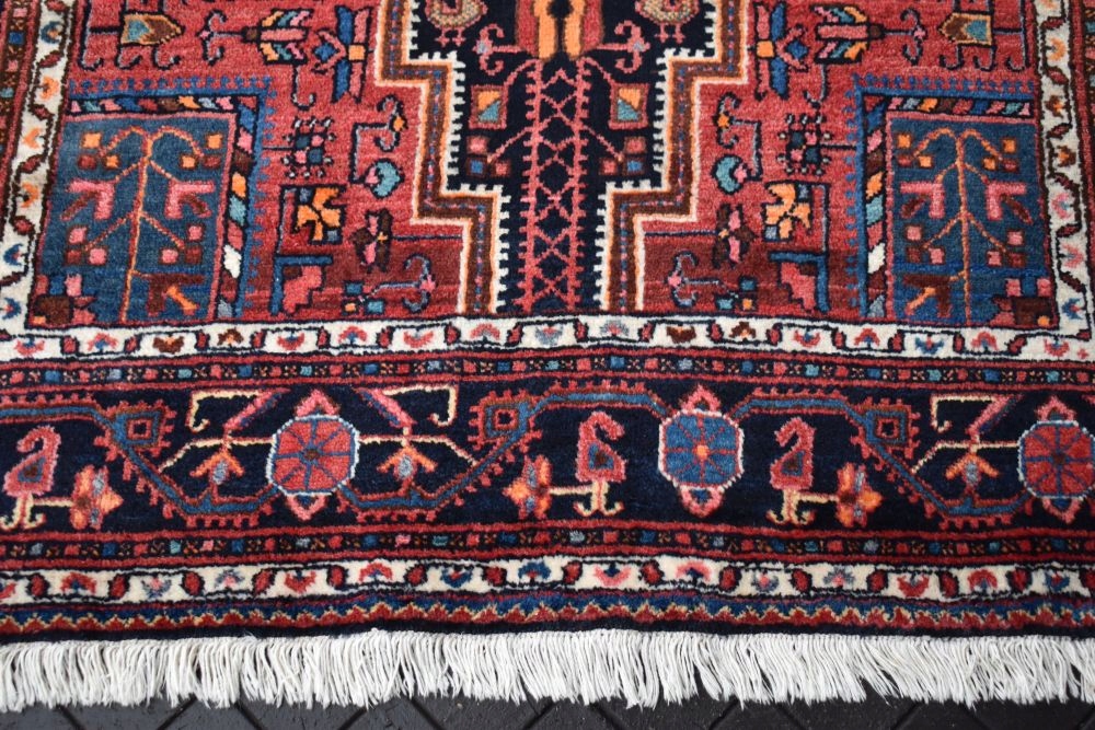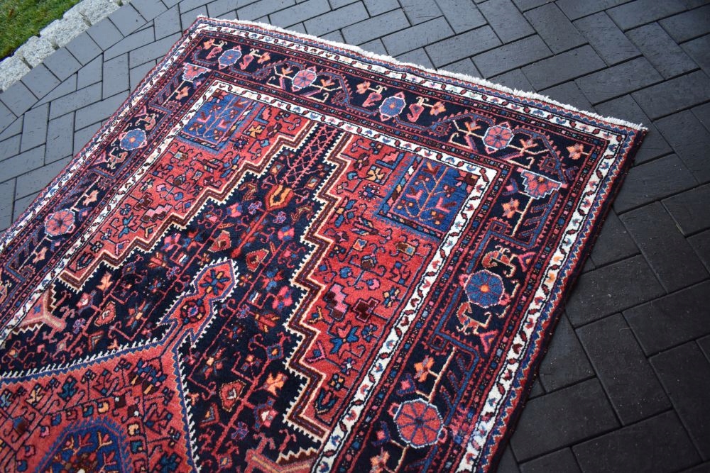 На наступному аукціоні я пропоную вам гарний, виготовлений з вовни найвищої якості, складного ручного виткання, оригінальний перський килим HAMADAN - Made in Iran! Дуже якісний килим, стійкий і довговічний у використанні. Килим має світлішу смугу, яку видно на фото, що робить його унікальним.