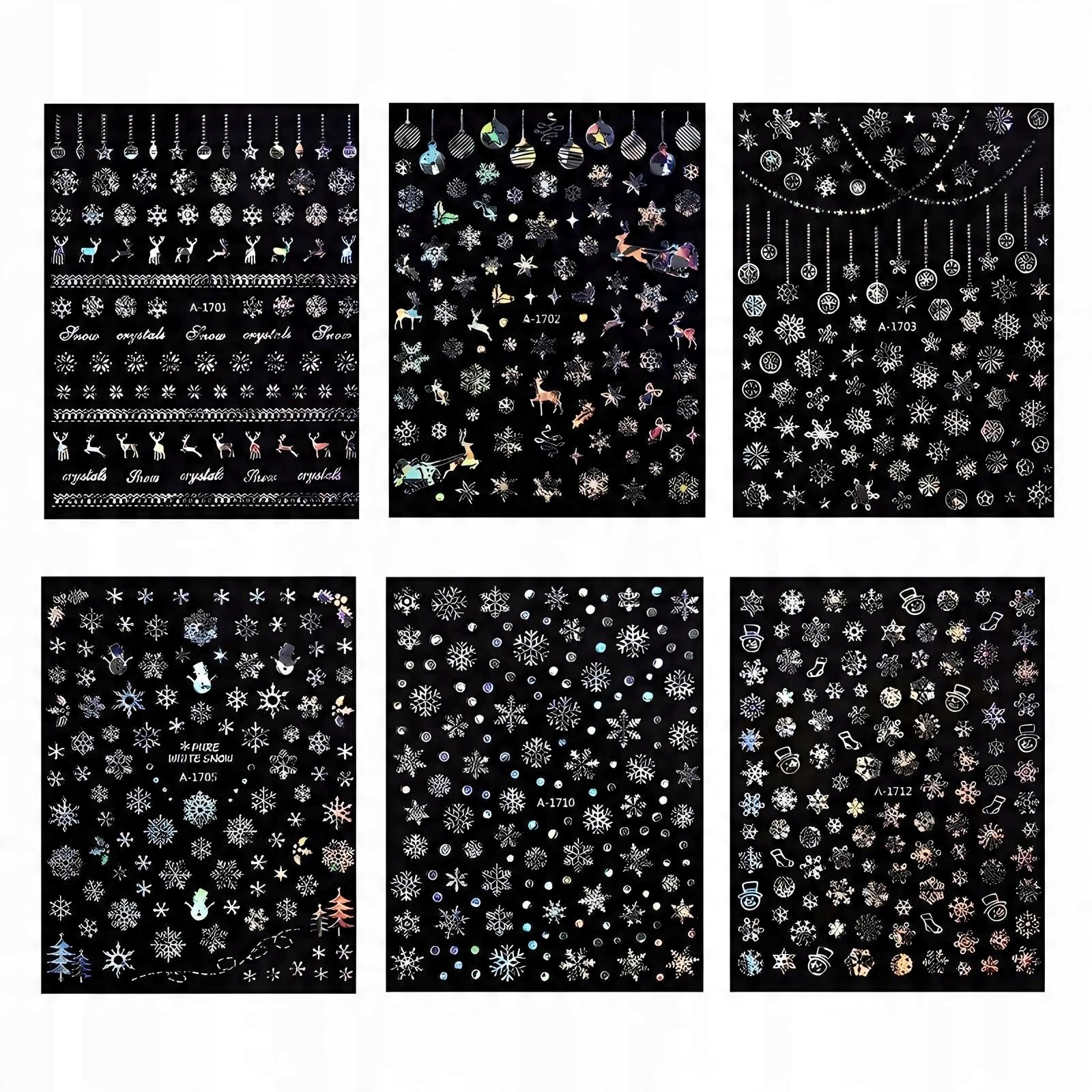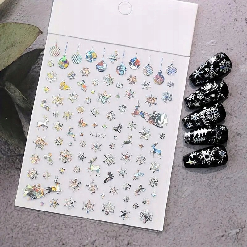 Блискучі різдвяні наклейки для нігтів - Різдво, сніжинки, дрібнички