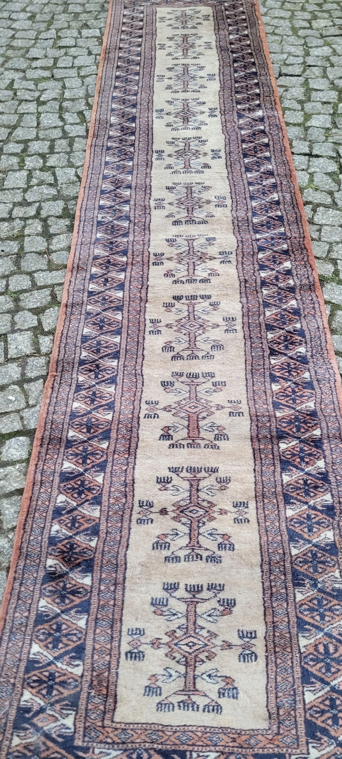 Це килим дуже високої якості, виготовлений у численних майстернях у Кашмірі, території, що простягається між Пакистаном та Індією. Він виготовлений з блискучої кашемірової вовни та має високу щільність вузлів, що робить цей килим дуже міцним. Нині він вважається одним із найкращих килимів, вироблених у Пакистані. Універсальні малюнки роблять цей килим підходящим для багатьох інтер'єрів.
