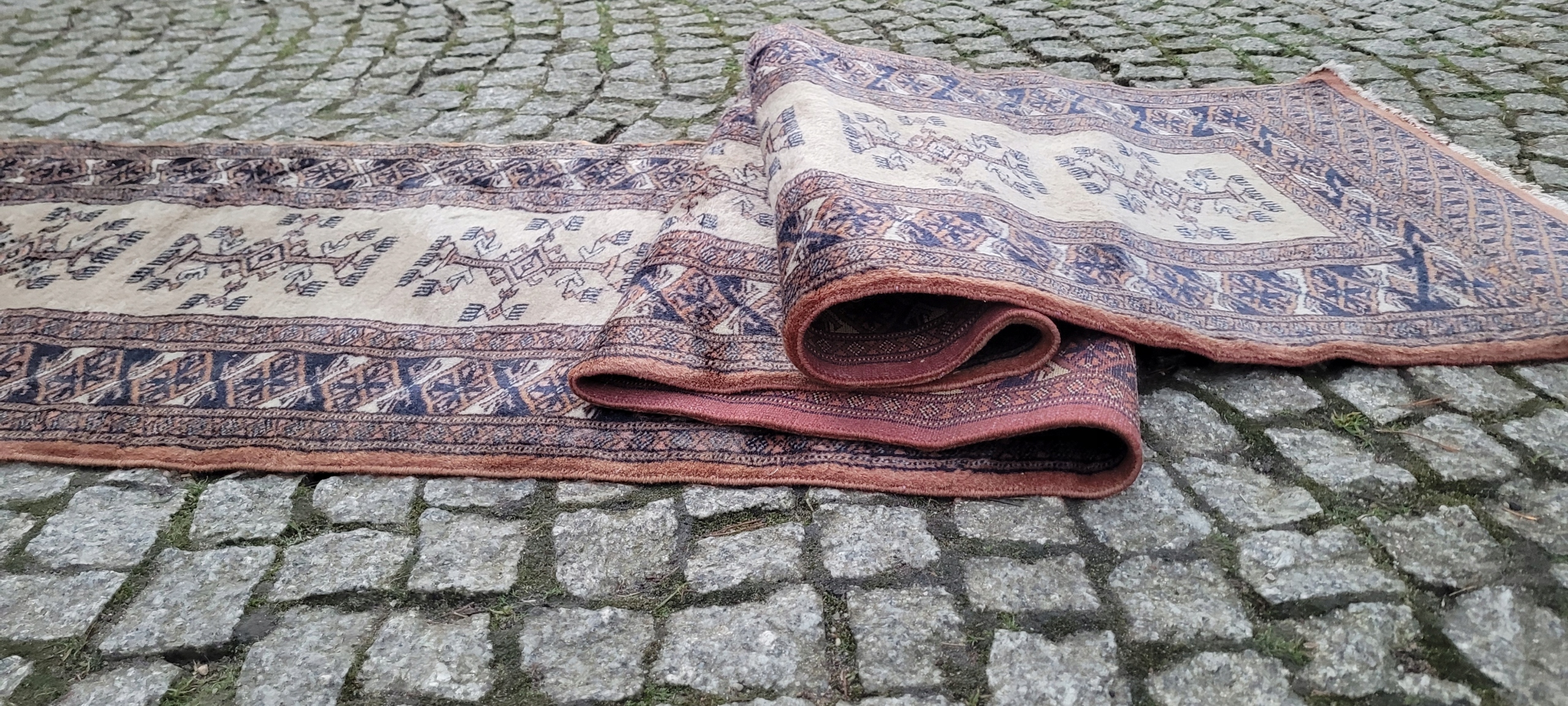 Бухарський килим. Виткана вручну з якісної блискучої вовни. Характеризується компактним, приємним на дотик, блискучим флісом і красивими кольорами та візерунками. У хорошому стані, видно на фото.