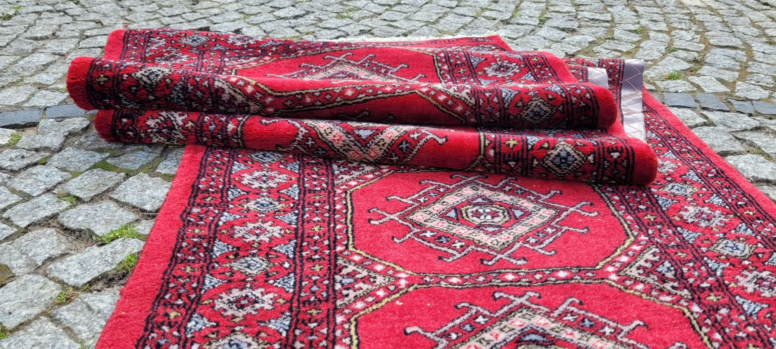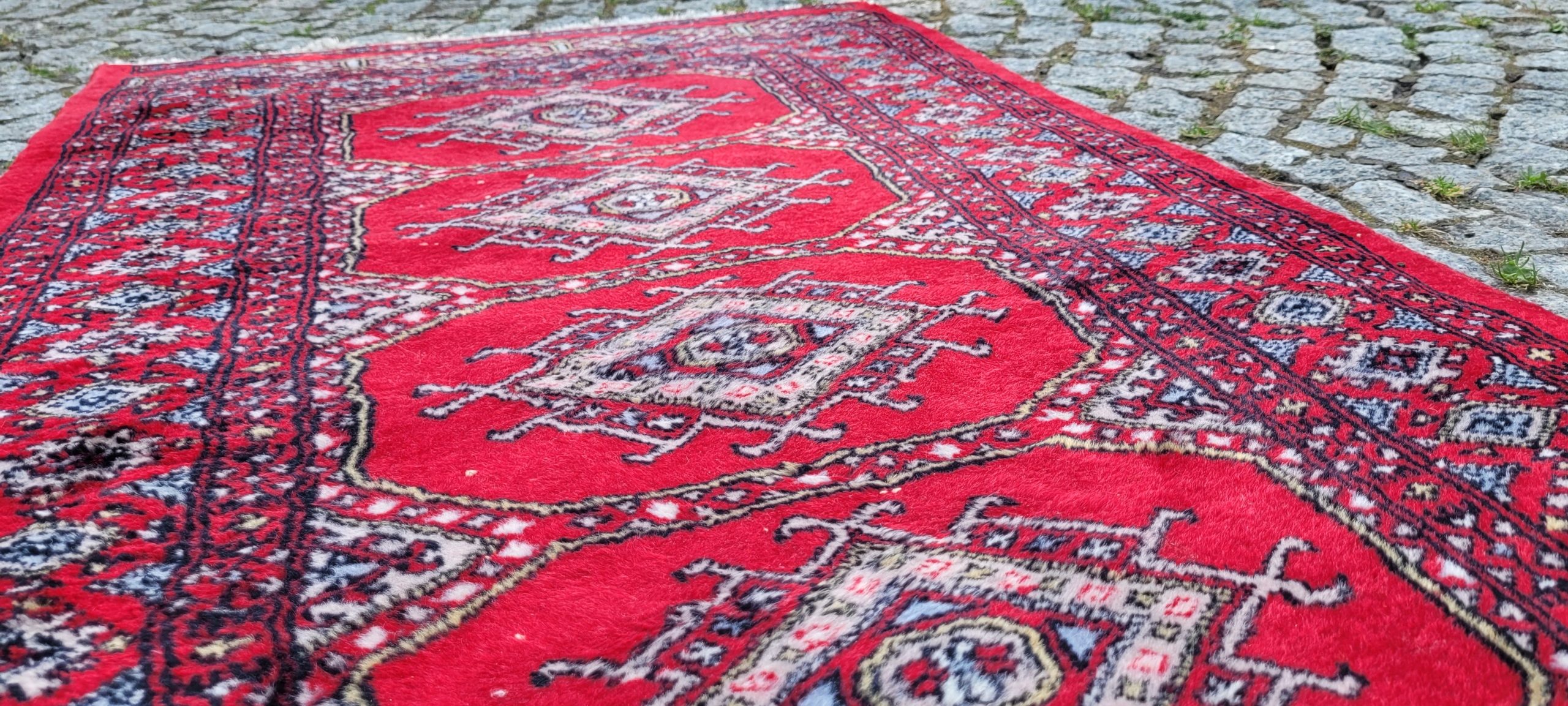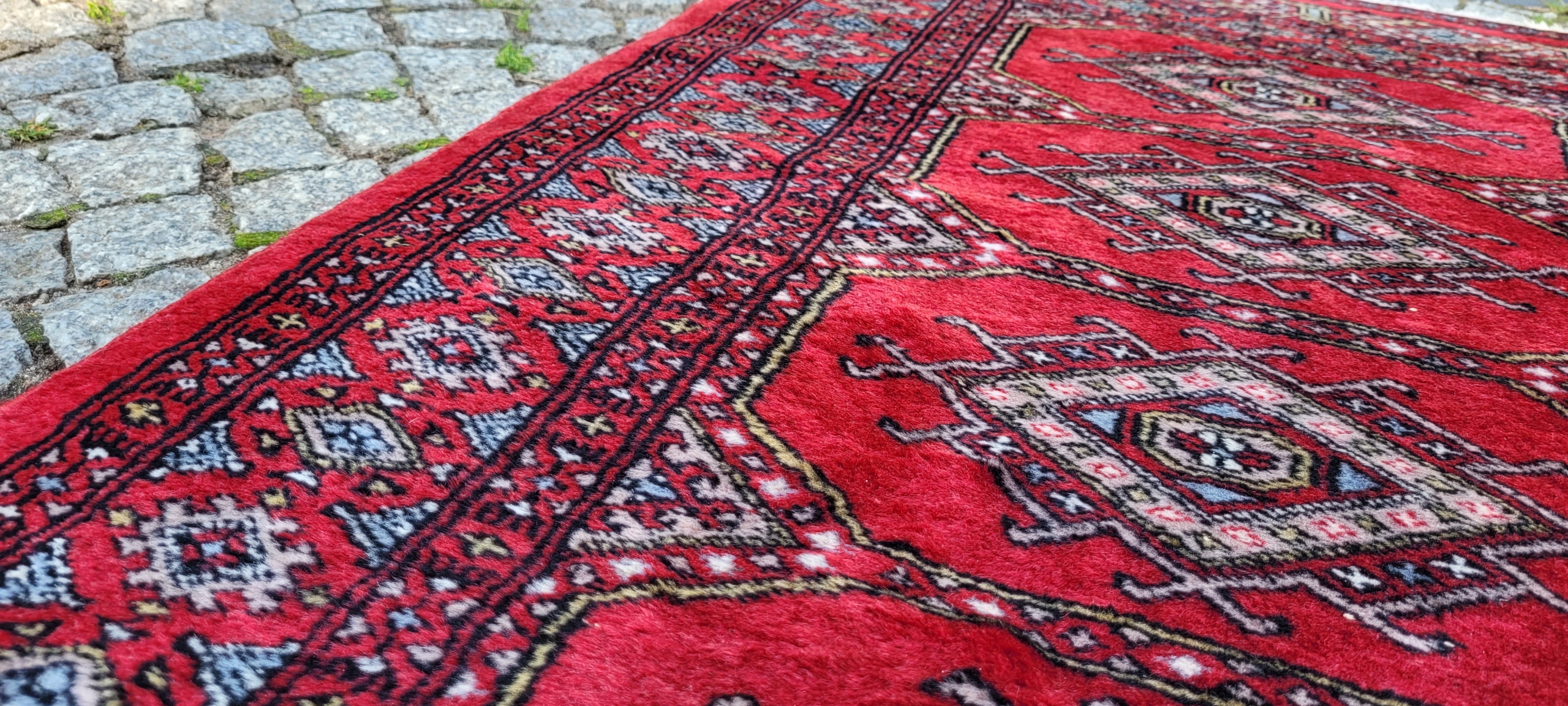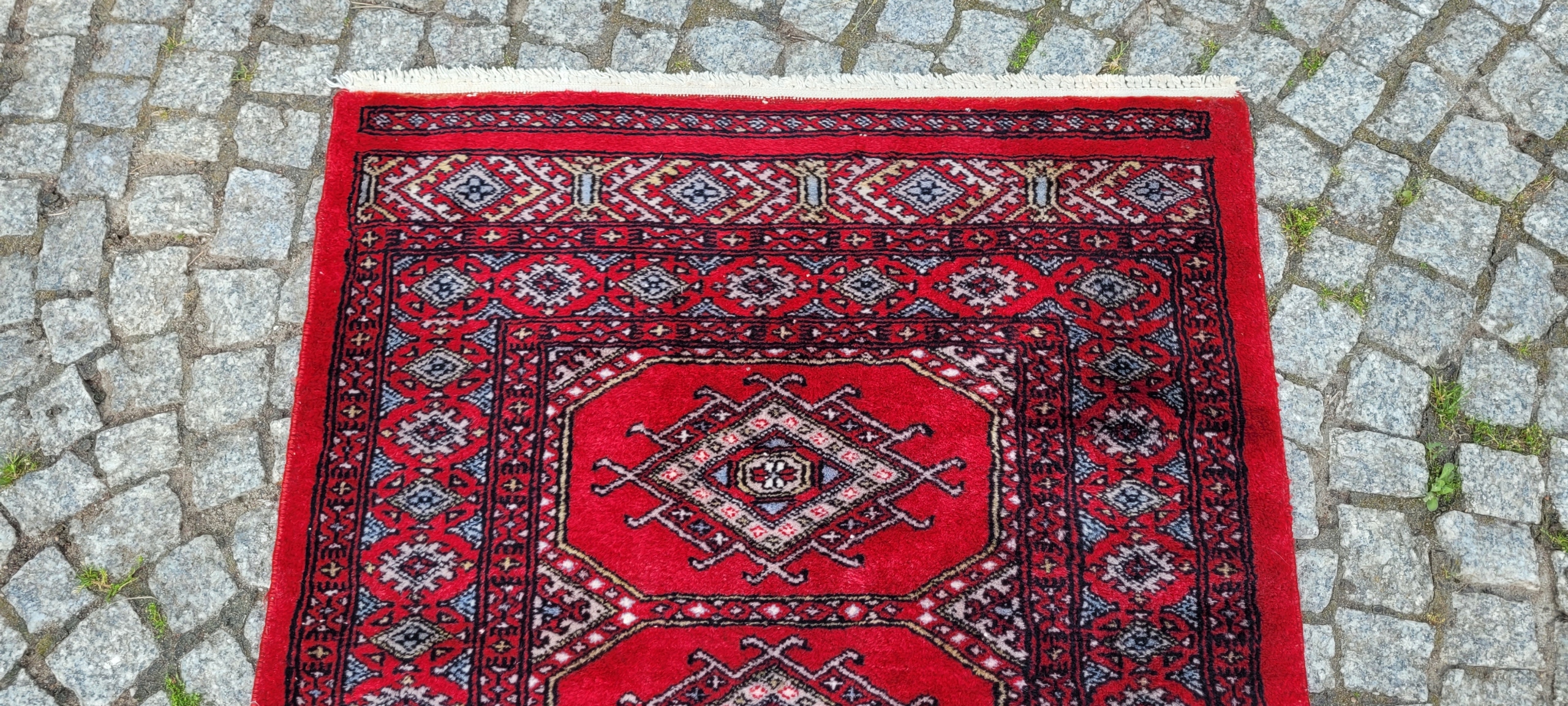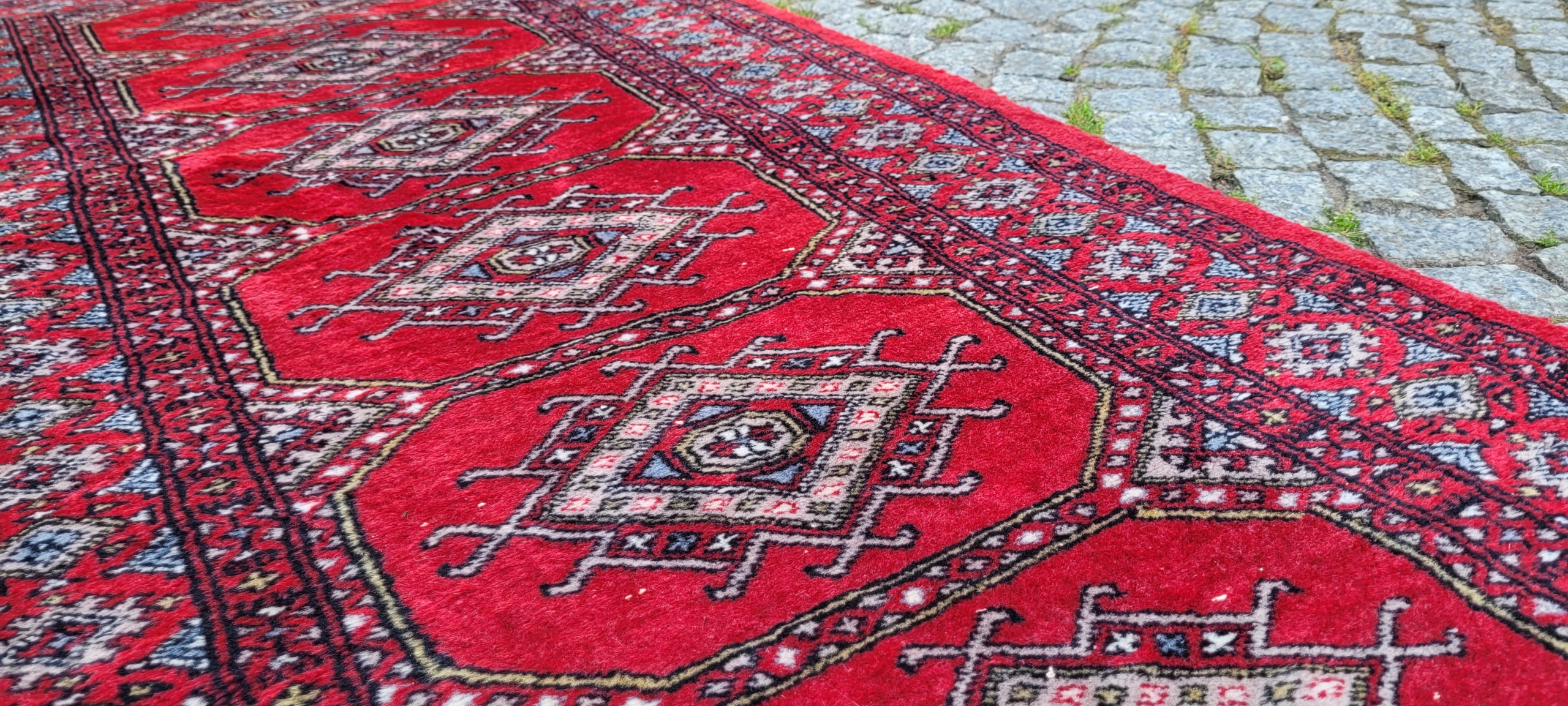 Бухарський килим. Виткана вручну з вовни найвищої якості. Характеризується компактним, приємним на дотик, блискучим флісом і красивими кольорами та візерунками. У дуже хорошому стані, видно на фотографіях.