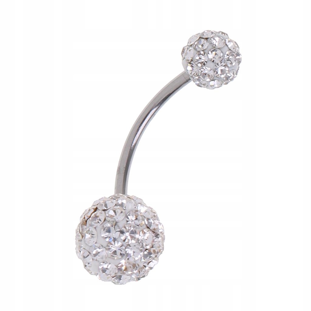 Błyszczący kryształowy pępek z prętem ze stali nierdzewnej, biały