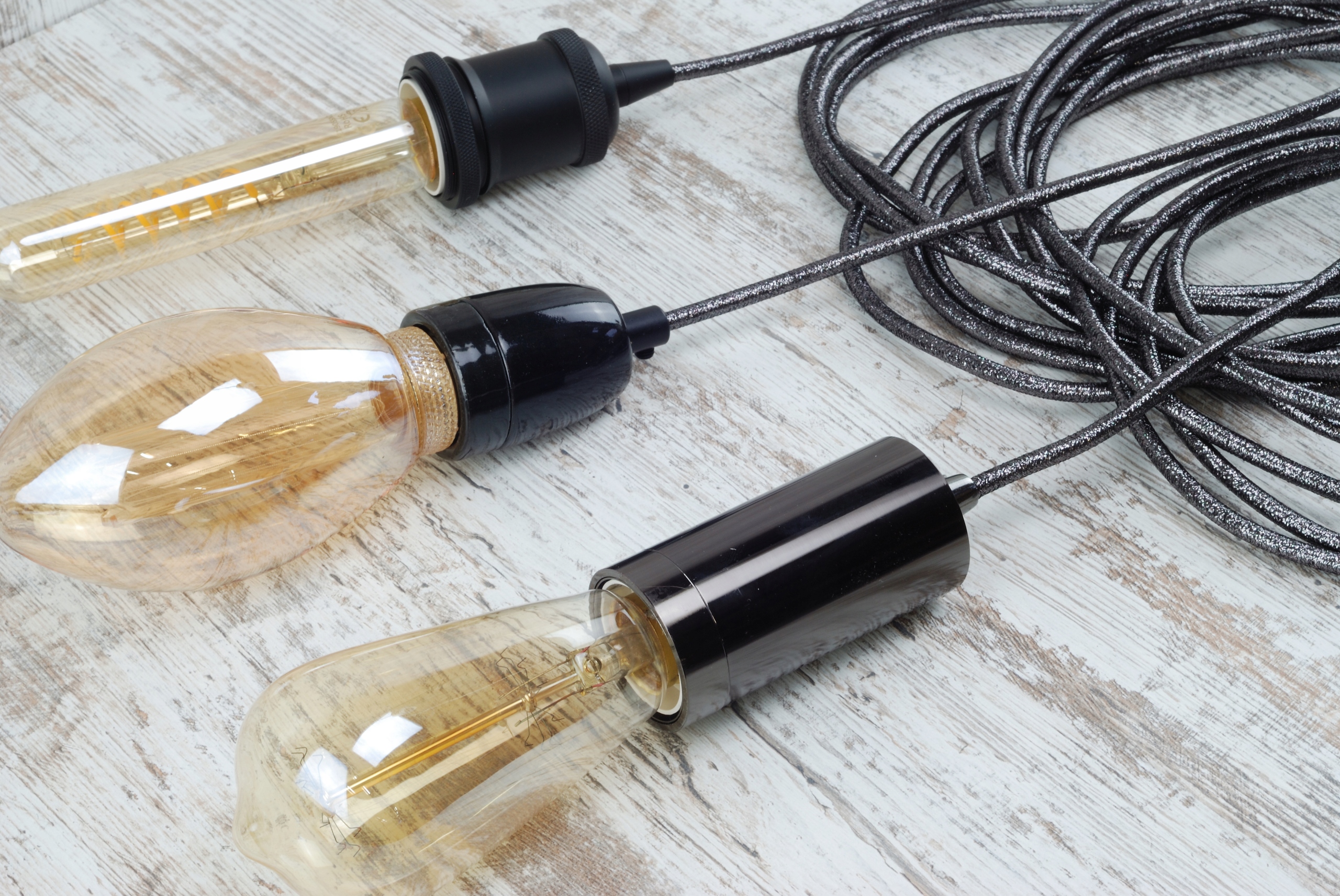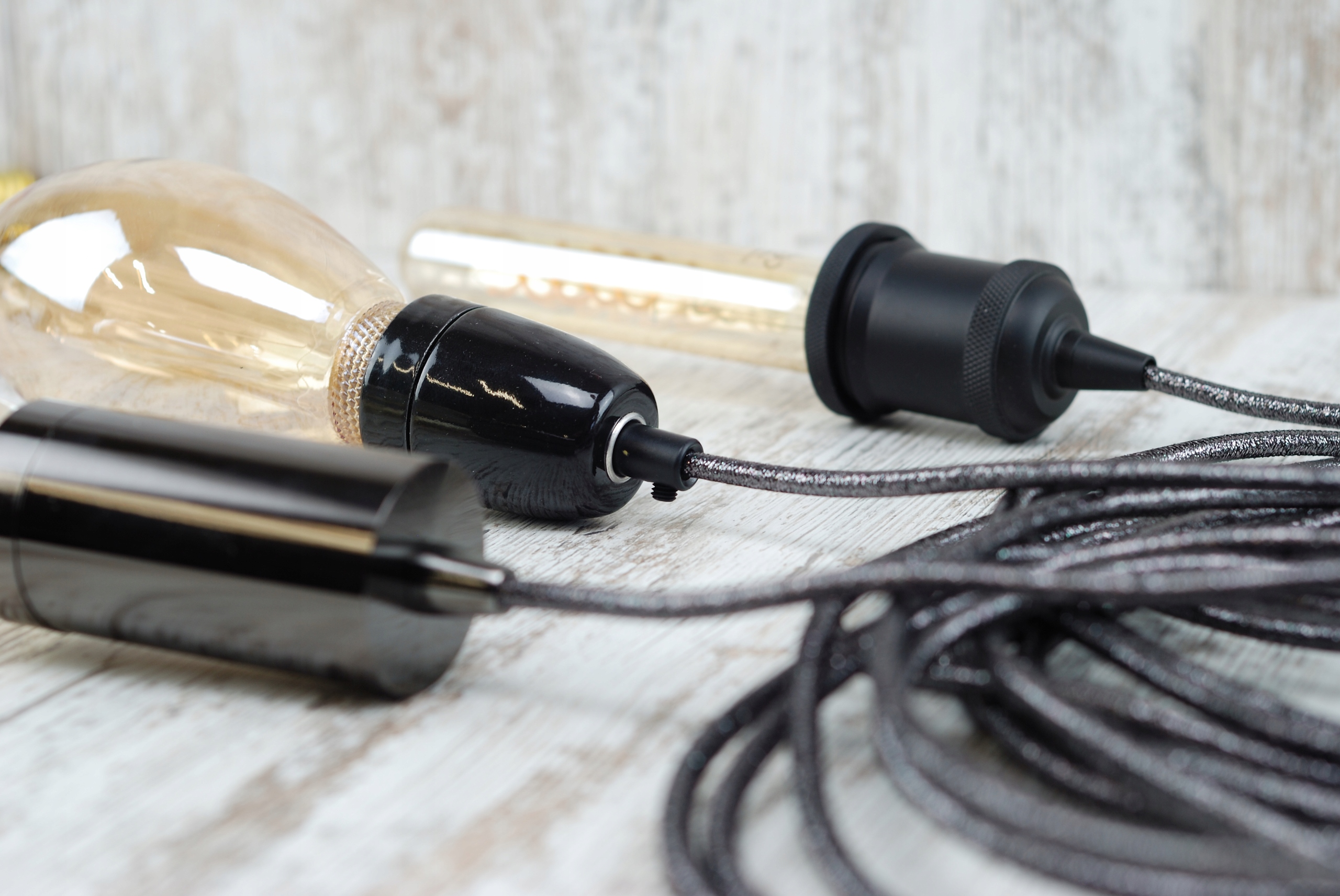 блискучий плетений кабель, чорний хромований кабель для ретро-павука LOFT
