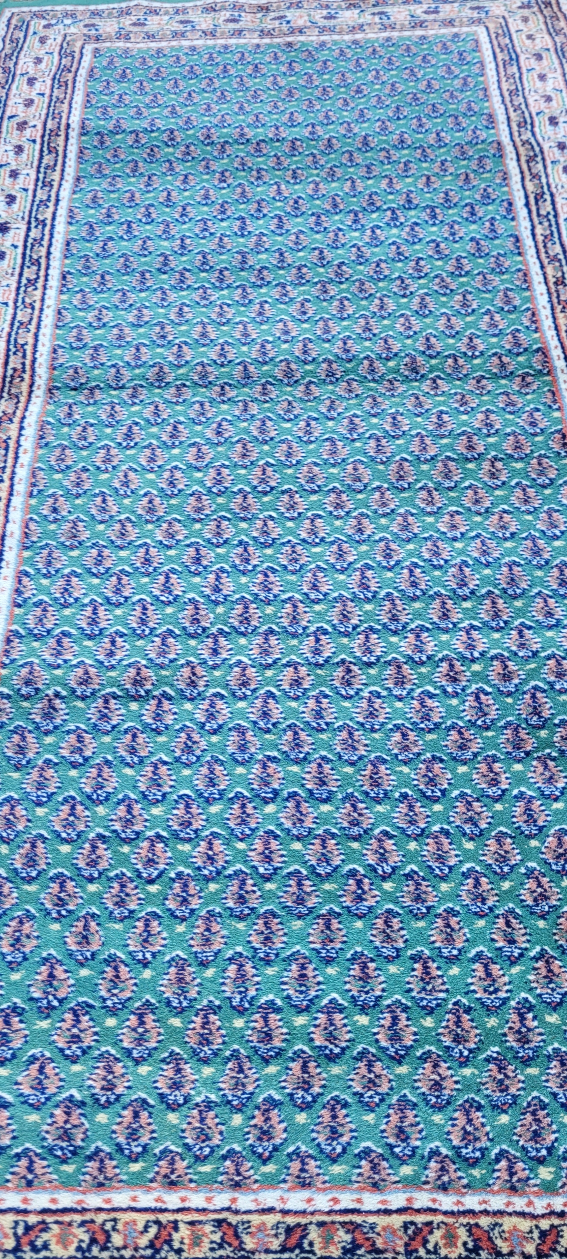 Красивий килим Індо-Мір Саруг. Сплетений вручну. Він характеризується компактним, приємним на дотик, м'яким флісом та красивими кольорами та дизайном. Він зберігається в хорошому стані, видно на знімках.