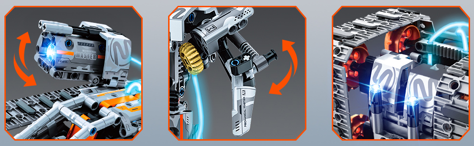 - ✈️Досліджуйте майбутнє будівельних іграшок з дистанційним керуванням за допомогою нашого інноваційного світлодіодного робота на дистанційному керування; блимає круто синє світло, коли вмикається, і змінює колір світла із зеленого, блакитного на фіолетовий під час руху.