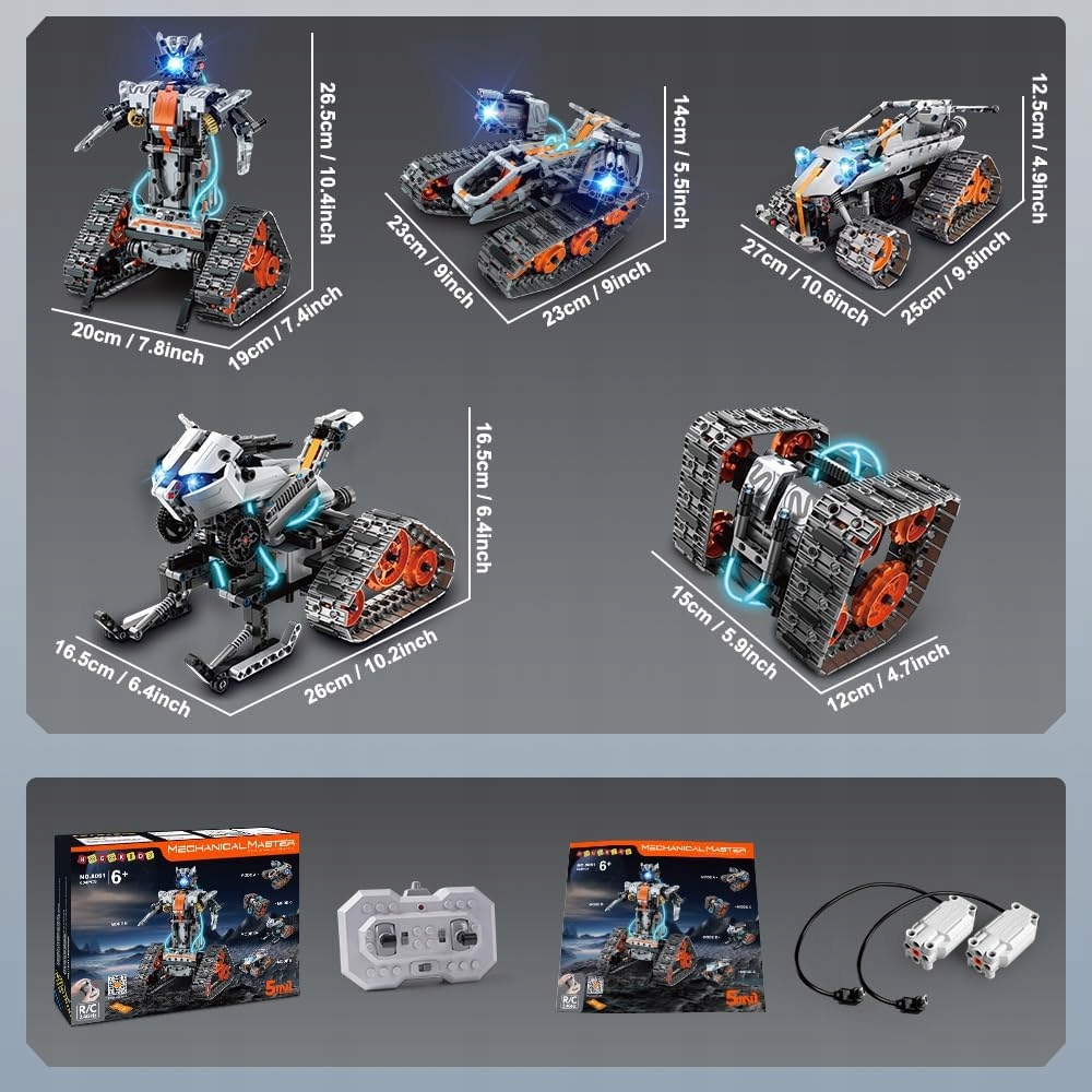 BLOCKS РОБОТ З ДИСТАНЦІЙНИМ КЕРУВАННЯМ RC TANK VEHICLE LED ПРОГРАМУВАННЯ 5in1 604pcs