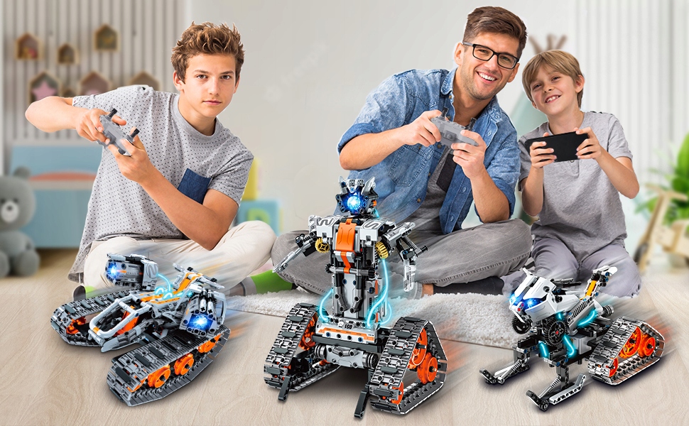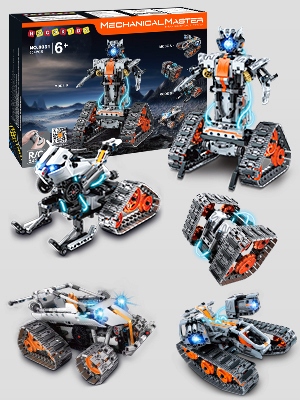 - ✈️Іграшки-конструктори HOGOKIDS з дистанційним керуванням дозволяють побудувати 5 різних моделей, зокрема робот, гусеничний танк, каскадер, гоночний автомобіль або сани