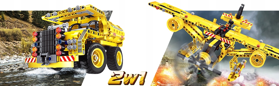 - ✔️Можна зібрати у вантажівку чи літак із елегантним виглядом і вишуканими деталями. Після створення модель оживає з гнучкими обертовими частинами. Нехай ваші діти веселяться багато годин!