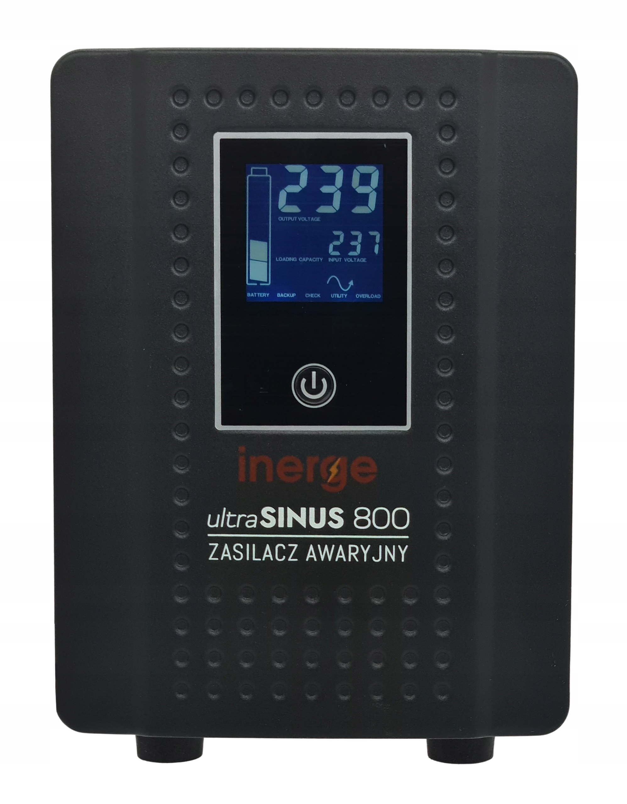 Аварійні джерела живлення Inerge Ultrasinus оснащені прозорим РК -дисплеєм, який буде вказувати поточний стан пристрою. На дисплеї ви будете контролювати, серед інших вхід, вихід та рівень частоти. Більше того, ви також швидко перевірите рівень навантаження та рівень заряду акумулятора.