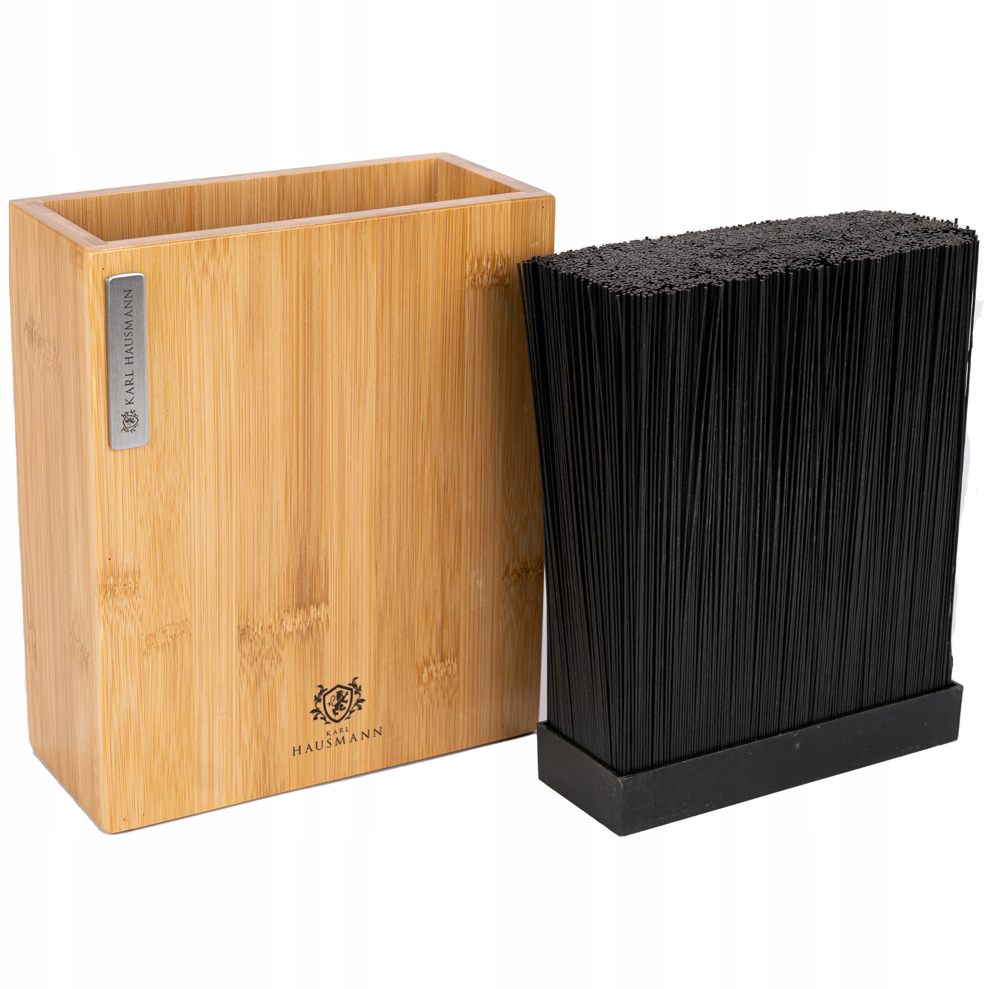Високоякісний матеріал і міцна основа гарантують повну стійкість підставки. Усередині блоку є стрижні, які утримують ножі в потрібному положенні. Вони універсальні, а це означає, що в них можна помістити як кухарський ніж, так і маленький ніж для нарізки.