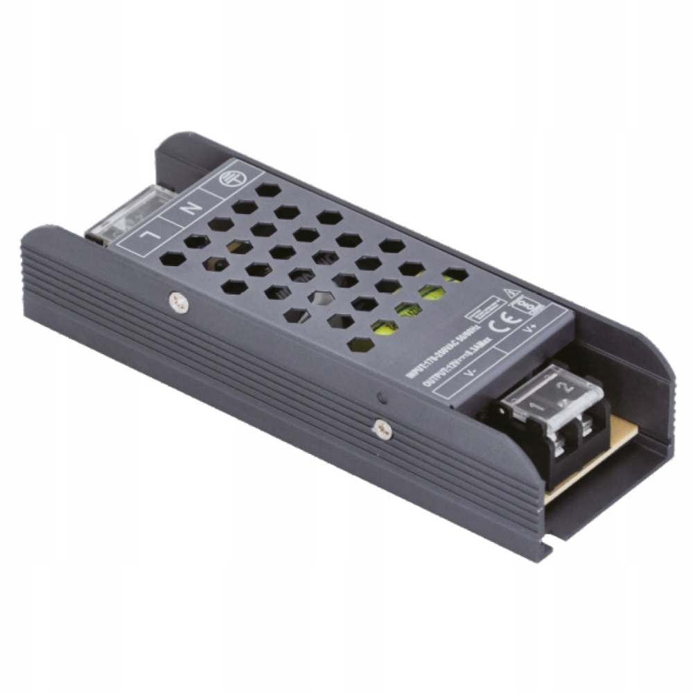 Світлодіодний блок живлення 12 В виготовлений з високоякісних компонентів, розміщених в алюмінієвому корпусі з класом герметичності IP20.