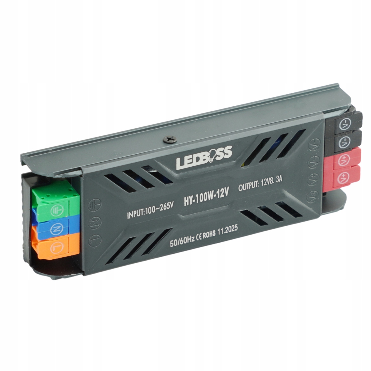 ДЖЕРЕЛО ЖИВЛЕННЯ 12 В 100 ВТ УЛЬТРА ТОНКИЙ ПРОФЕСІЙНИЙ ТРАНСФОРМАТОР СВІТЛОДІОДНОЇ СТРІЧКИ З ЗАЖИМАМИ LEDBOSS