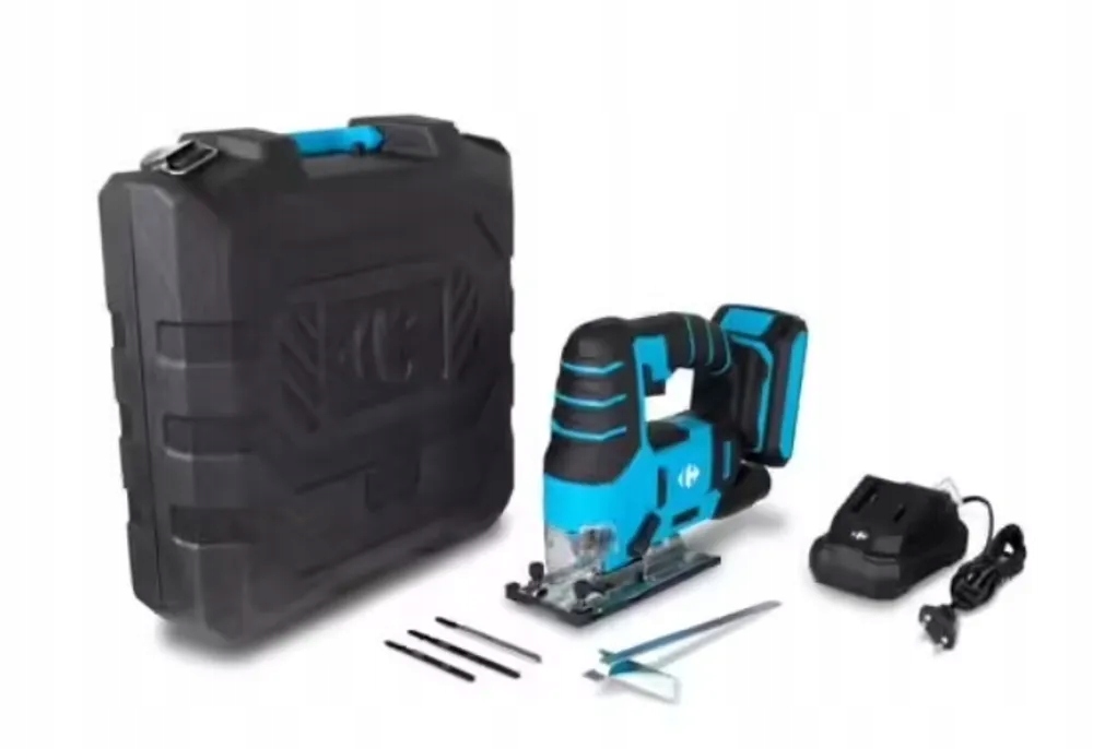 - Wyrzynarka , 3 леза, акумулятор, зарядний пристрій, валіза, посібник користувача.