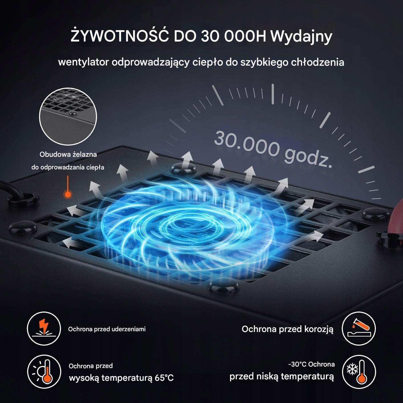 - Wbudowany System Ochrony - Zabezpiecza przeded przegrzaniem i przepięciami.