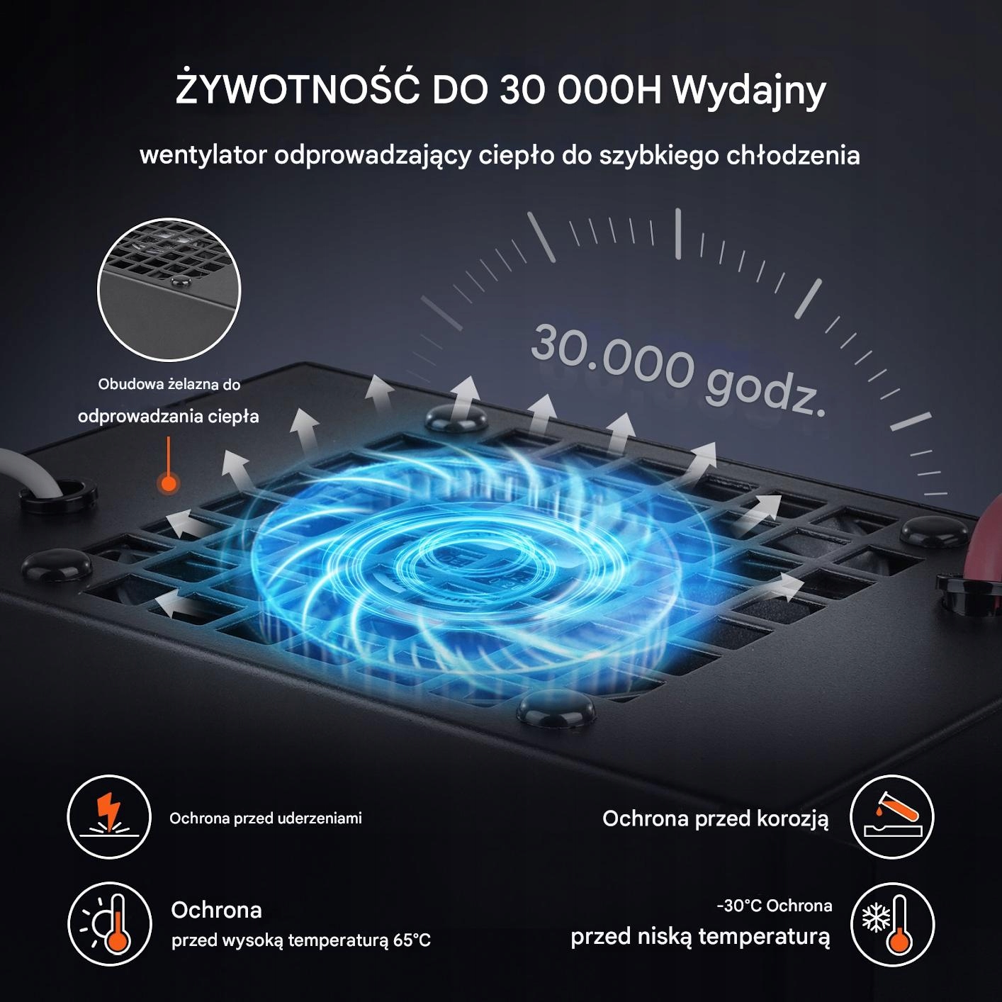 - Wbudowany System Ochrony - Zabezpiecza przeded przegrzaniem i przepięciami.