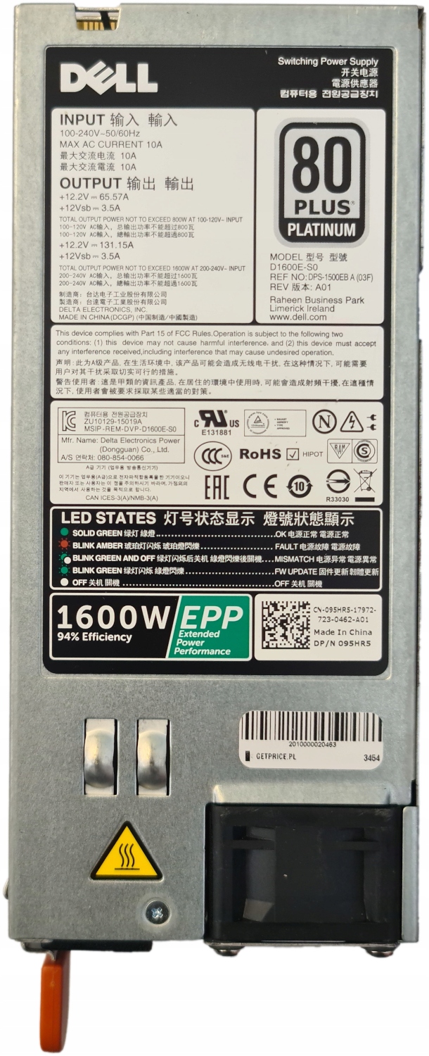 Детальна специфікація:DELL 095HR5 1600W PowerEdge R640 R740 T640 T440