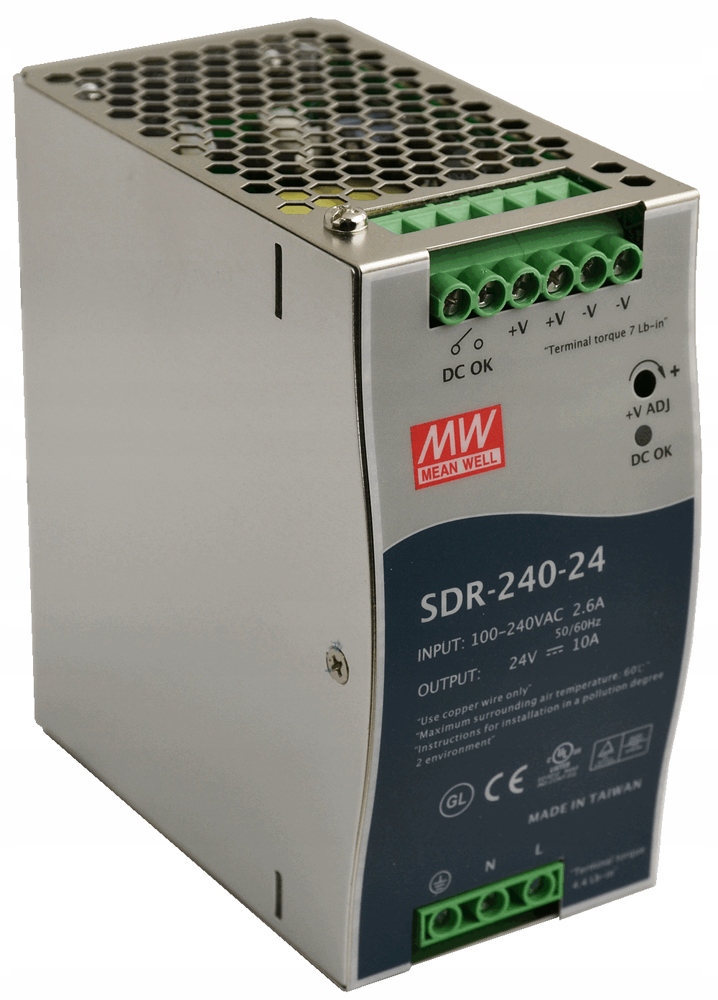 Імпульсне джерело живлення марки Mean Well з номінальною напругою 24V DC в модульний корпус із SDR відповідає найсуворішим стандартам і критеріям, тому його можна використовувати в системах промислової автоматизації, для керування машинами, силовим освітленням і широким спектром пристроїв.