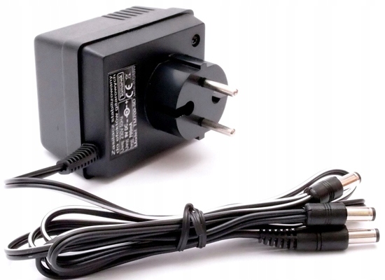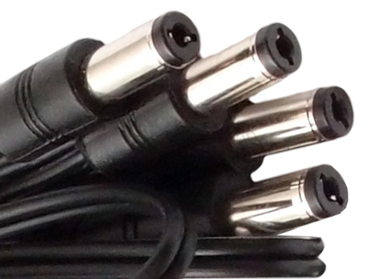 - 4 кабелі зі стандартними роз’ємами 5,5/2,1 мм прямі, стандартний «+» поза роз’ємом, типова полярність для більшості ефектів