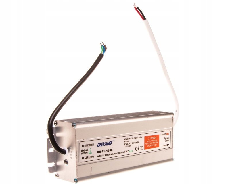 Блок живлення, призначений для світлодіодного освітлення, включаючи: окремі діоди, стрічки, світлодіодні стрічки, лампочки, модулі, шланги або неонові світильники. Він оснащений ручками, які дозволяють кріпити його до стіни. Характеризується водонепроникним, герметичним металевим корпусом, що дозволяє використовувати в умовах підвищеної вологості, наприклад, поза будівлею. Він характеризується постійною вихідною напругою незалежно від допустимого навантаження Джерело живлення оснащене такими захистами: від короткого замикання, перевантаження, напруги ВИХІДНІ ПАРАМЕТРИ живлення: 12 В номінальний струм: 6,25 А діапазон: 0~6,25 А потужність: 70W стійкість до перешкод: ±4% ВХІДНІ ПАРАМЕТРИ діапазон напруги: 90 ~265 В змінного струму діапазон частот: 47~60 Гц ЗАХИСНІ ПАРАМЕТРИ рівень захисту: IP67 коротке замикання: тип захисту: автоматичний запуск після усунення несправності перевантаження: захист від перевантаження - вище максимального показання: 145 ~160% від перегріву: тип захисту: відключення, відключення електроенергії, робоча температура: -30~ +60°C робоча вологість: 20~90% розміри: 170 x 54 x 35 мм (ширина / висота / глибина) вага: 0,5 кг / ПК.