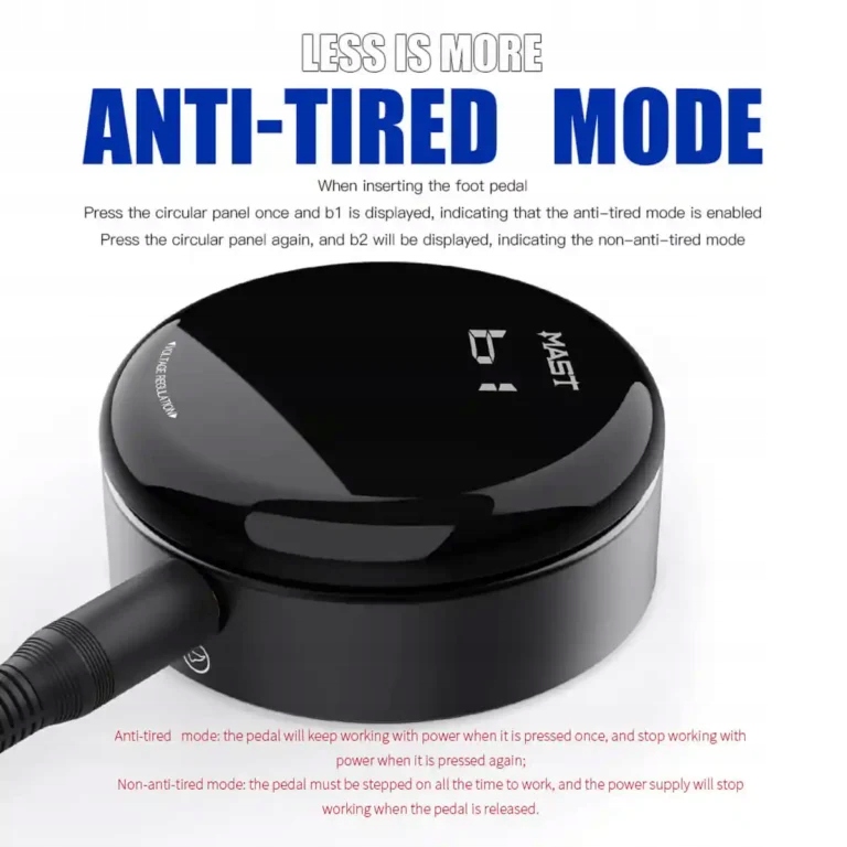 Режим усунення втоми та режим без утоми: для цієї потужності є два режими. Розташувавши педаль, натисніть один раз на круглу панель, і на ній з’явиться b1, що означає, що ввімкнено режим «антивтоми». Натисніть круглу панель знову, і відобразиться b2, що вказує на режим без утоми.
